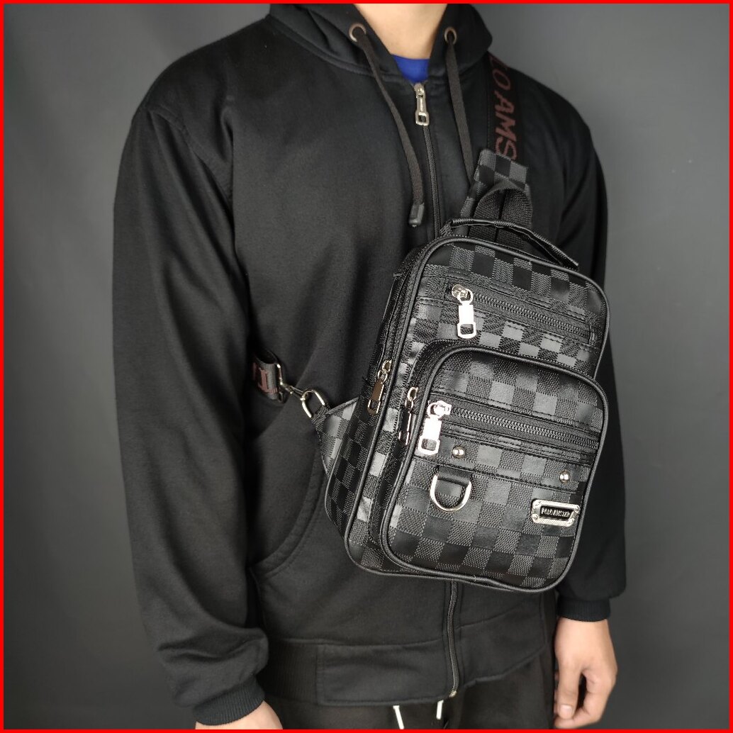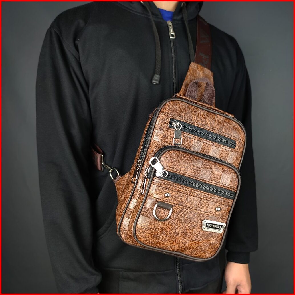Tas Selempang Bahu Polo Amstar Bahan Kulit Pu Slingbag Tas Pundak Pria