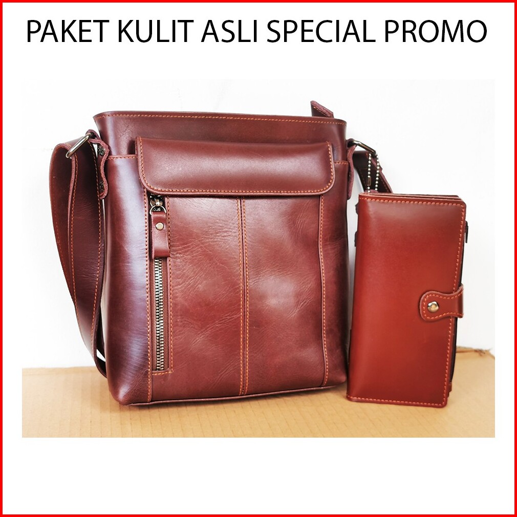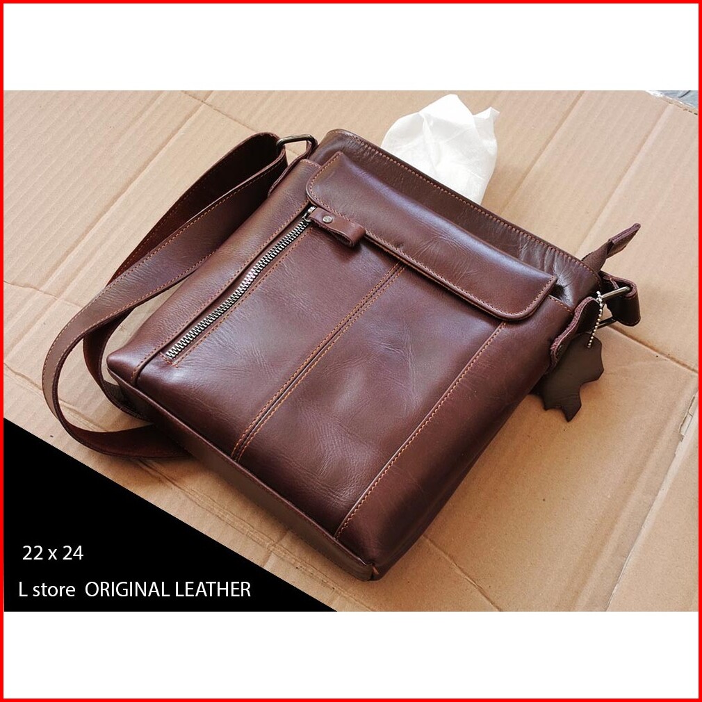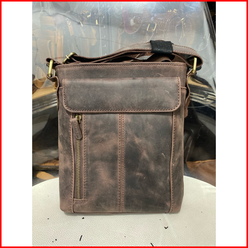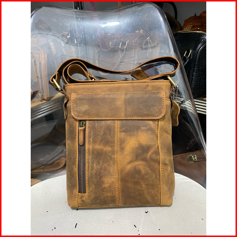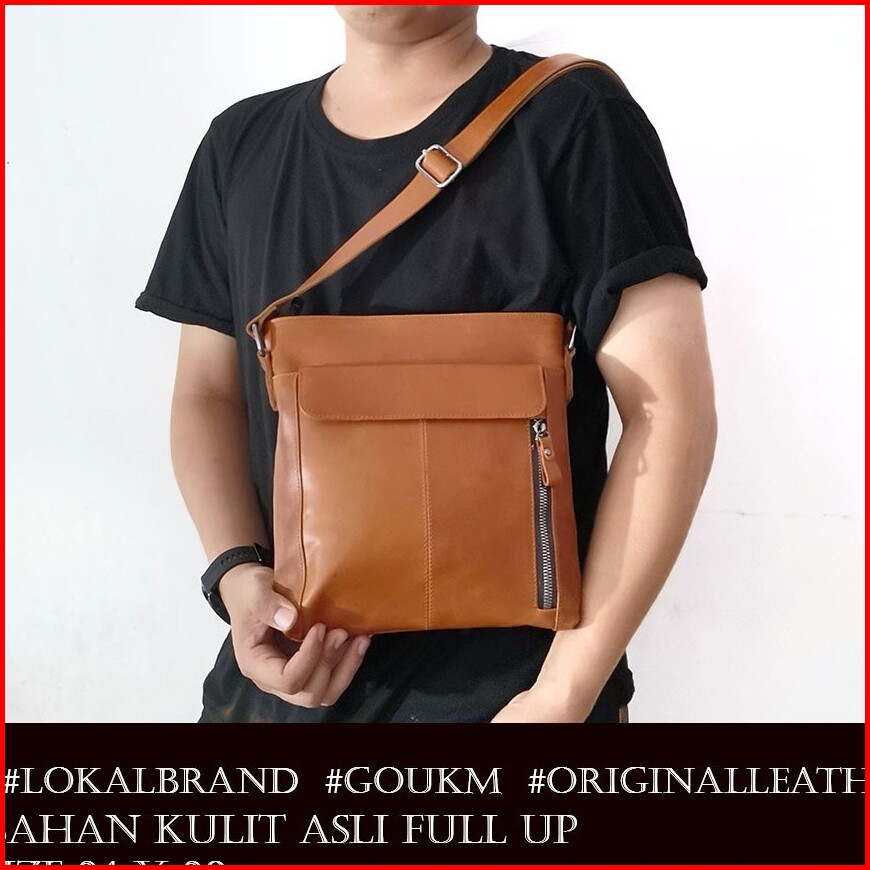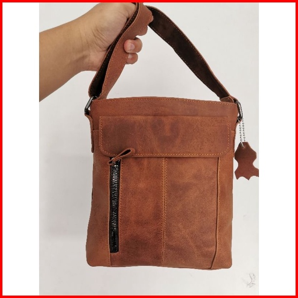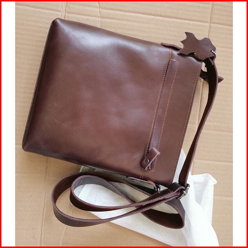 Tas Kulit Pria Oxford Leather Messenger Sling Bag - Two Tone Brown