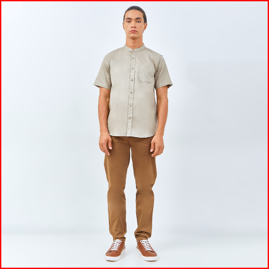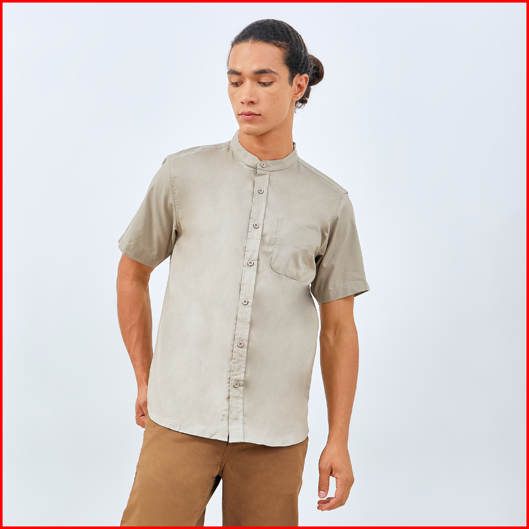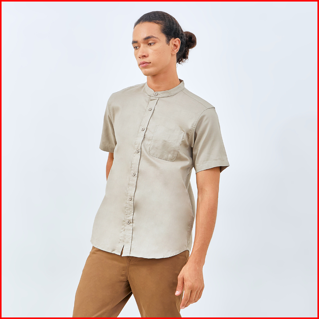 M231 Kemeja Pria Koko Shanghai Polos Pendek Olive 0184f