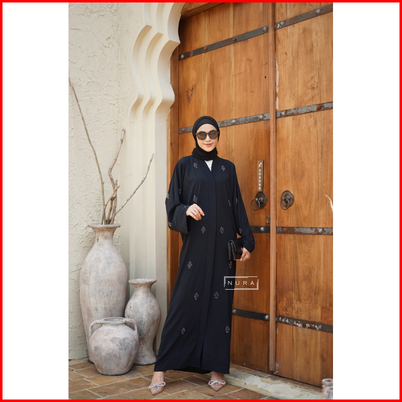 Thanaz Abaya Full Kancing Payet Cristal Issey Miyake