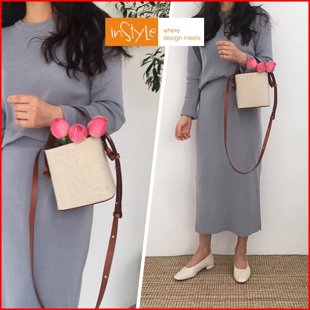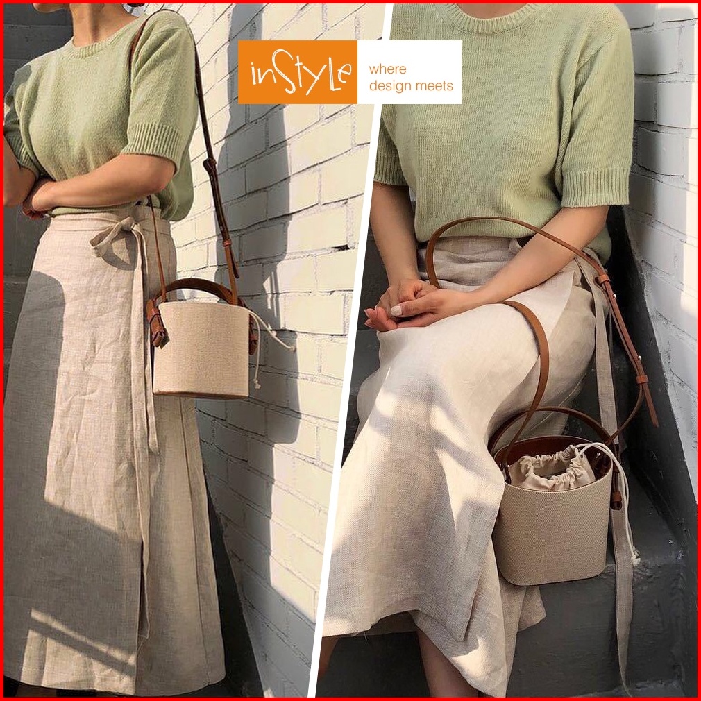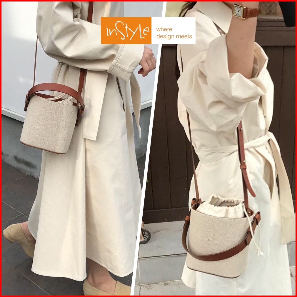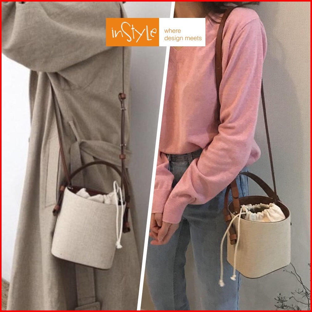 Tas Bucket Tangan Bahu Selempang Kanvas Wanita Handbag Korea Style T2-027