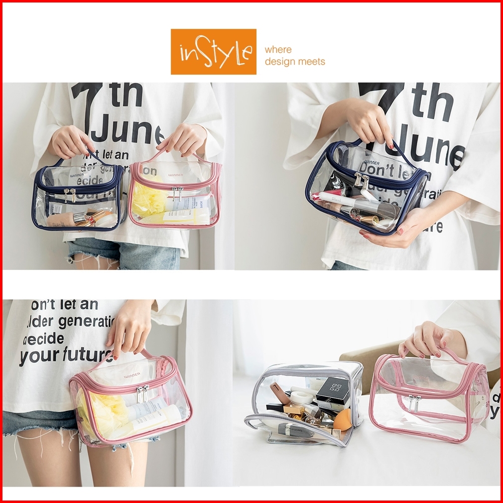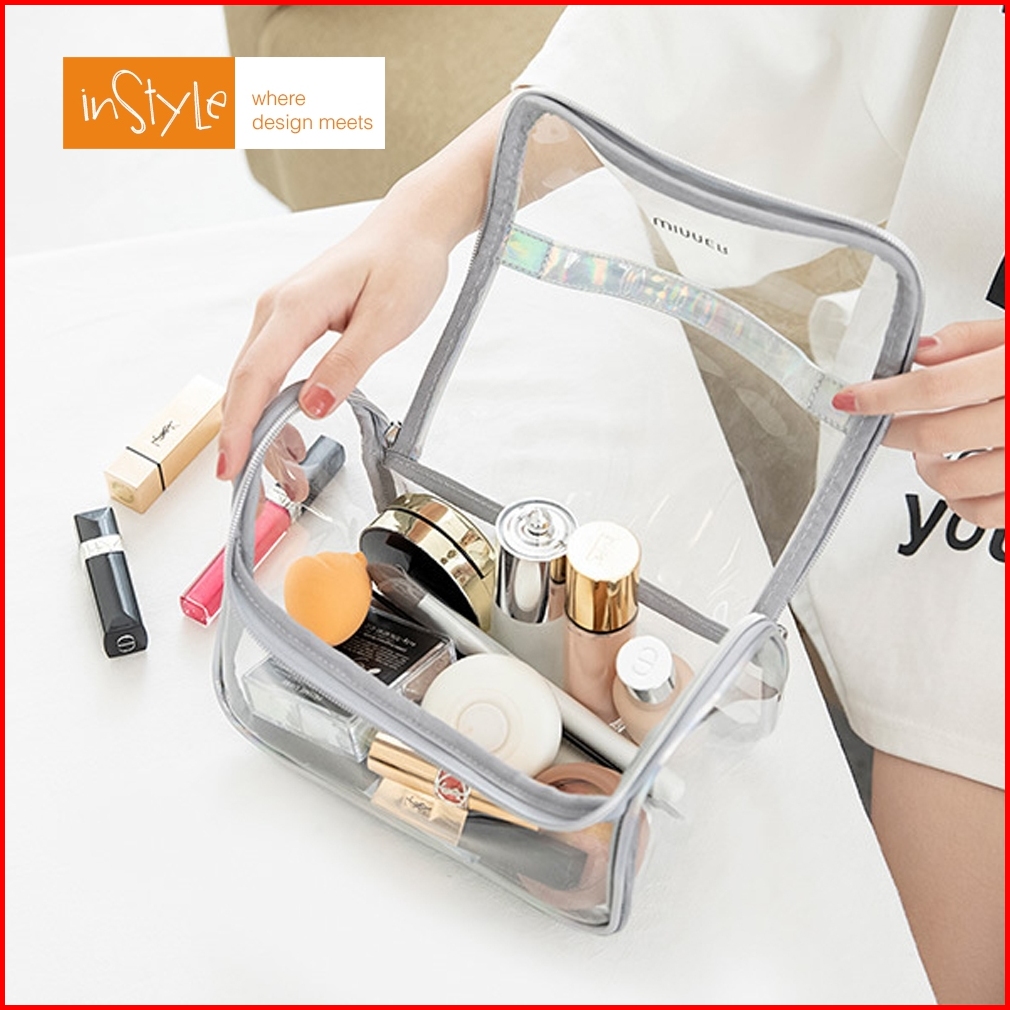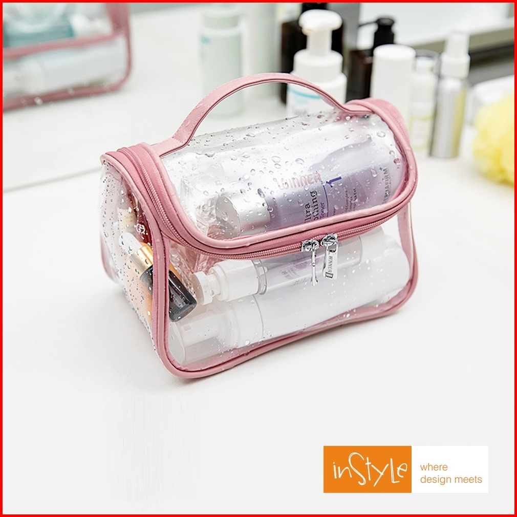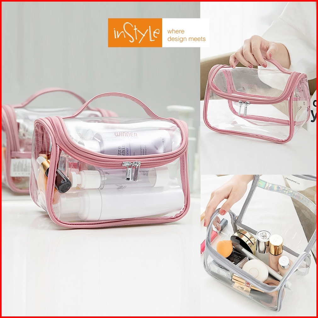 Tas Make Up Kosmetik Pvc Kulit Pu Waterproof Transparant Pouch Travel Organizer F1-f01