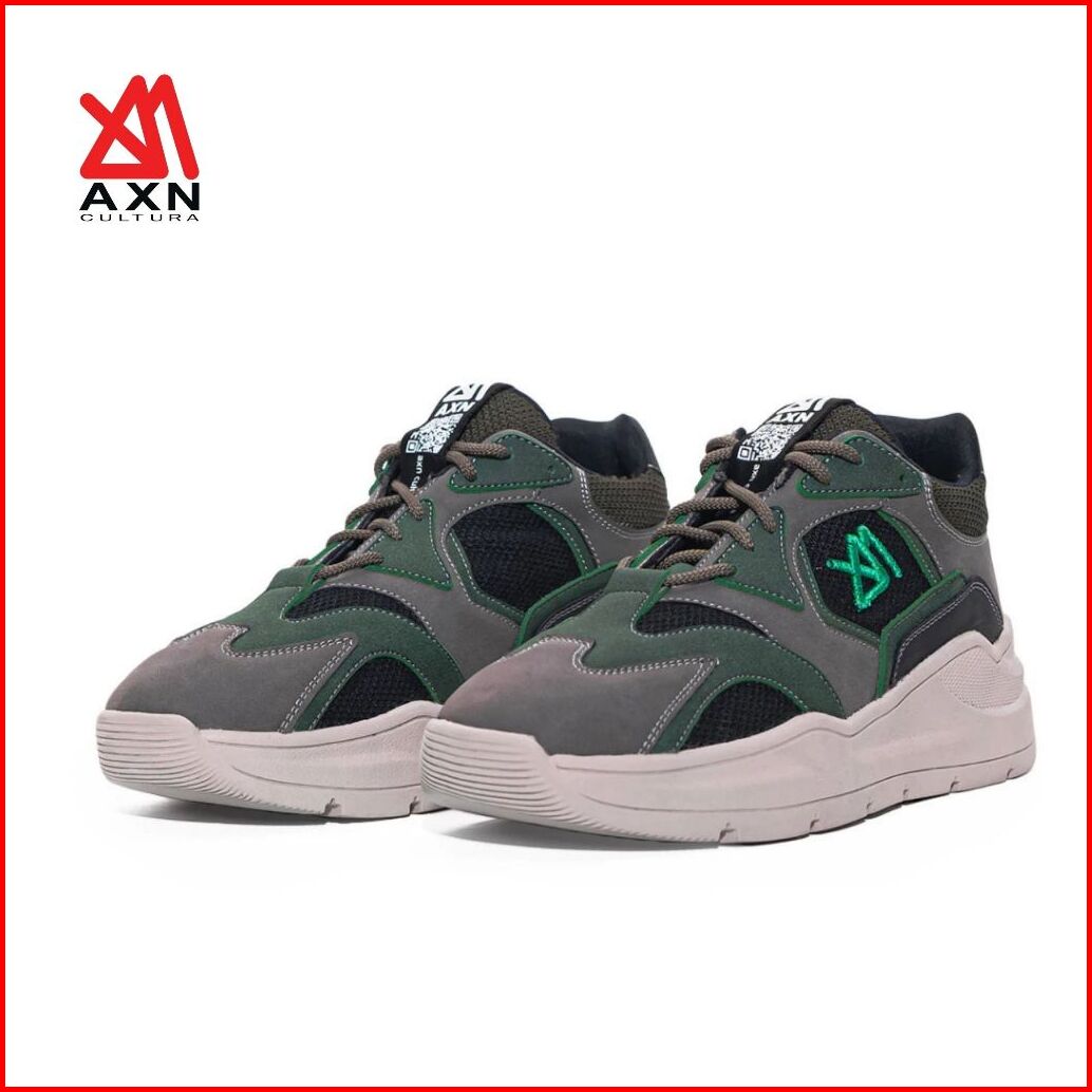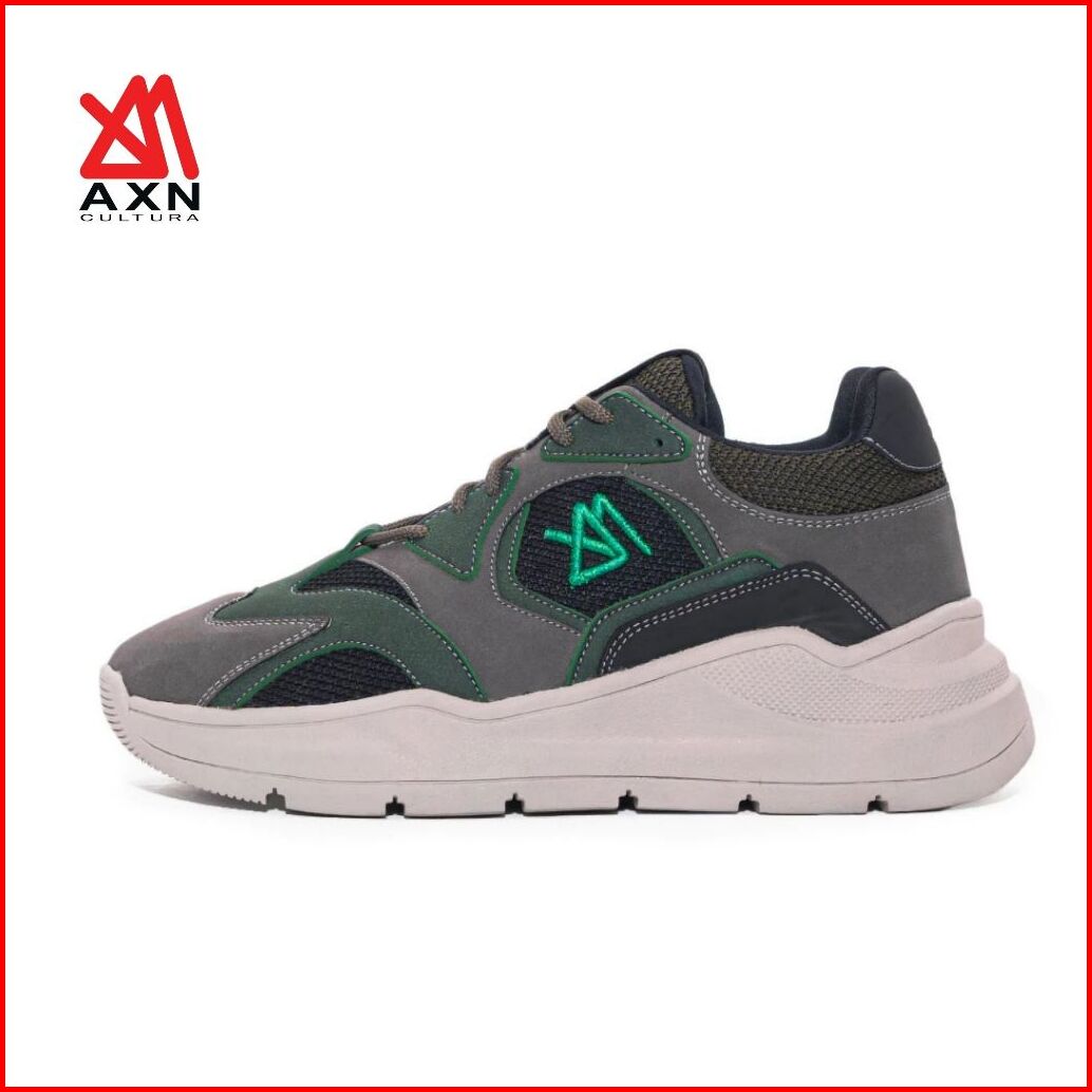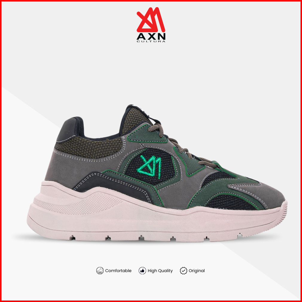 Sneakers Casual Synthetic Nubuck Nylon Mesh Axn Cultura Axio Green Grey Sepatu Pria