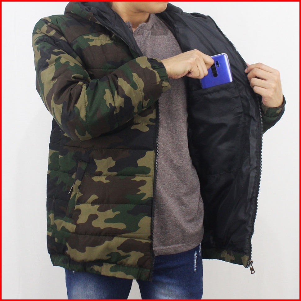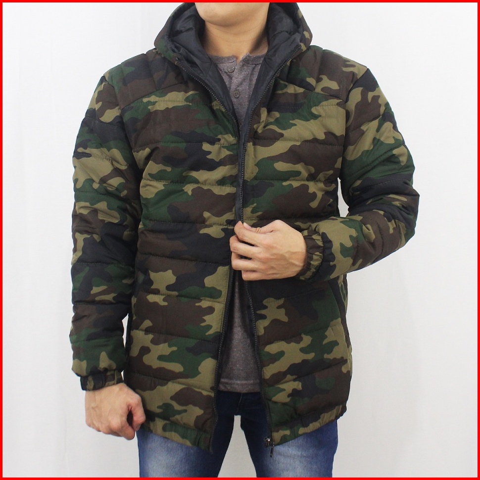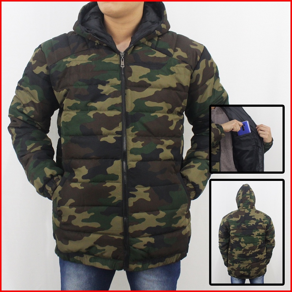 Jaket Puffer Camo Army Hijau 01 Tebal Pria Size M L Xl Xxl Xxxl - Jaket Winter Jumbo Size 2xl 3xl - Jaket Parasut Tebal