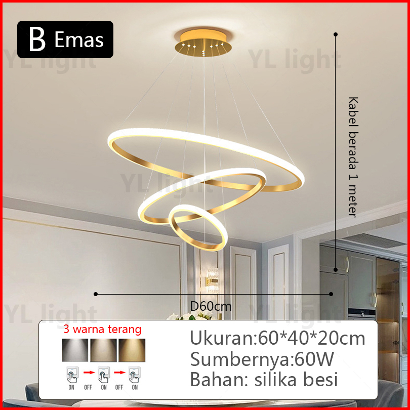 Lampu Gantung Modern Cincin Led Lampu Gantung Langit-langit Lingkaran Lampu Gantung Loteng Ruang Tamu Ruang Makan Dapur