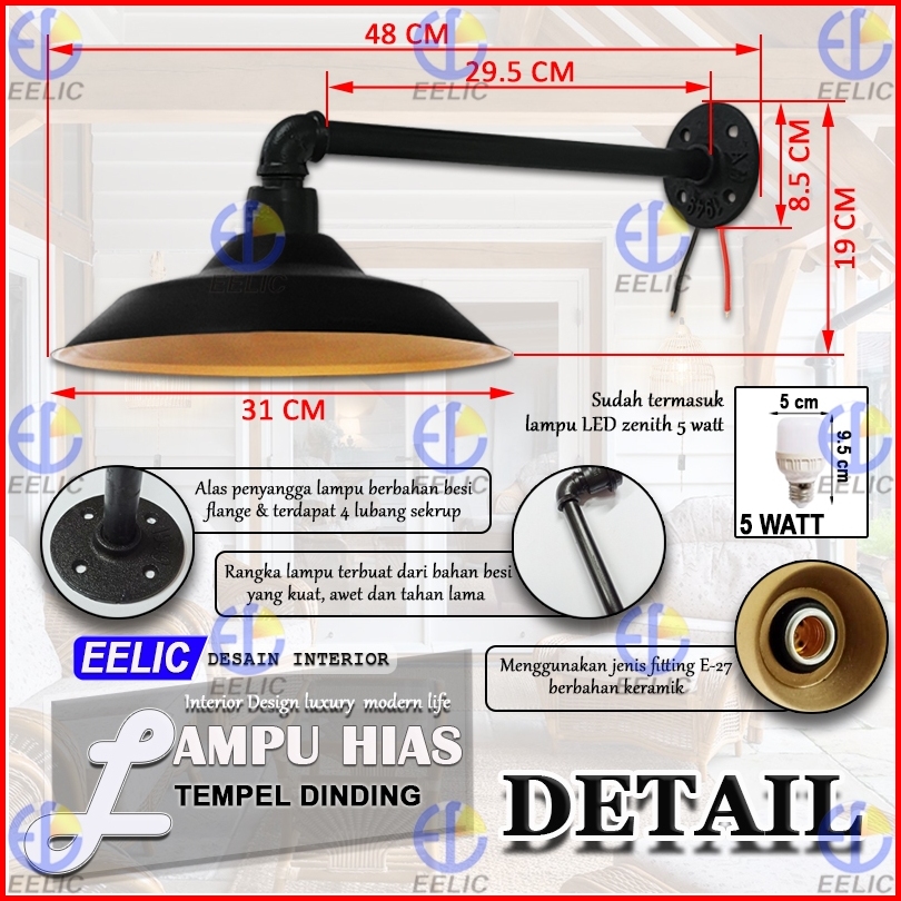 Eelic Lhg-305 Lampu Hias Gantung Tempel Dinding Pipa Classic Dengan Desain Modern.