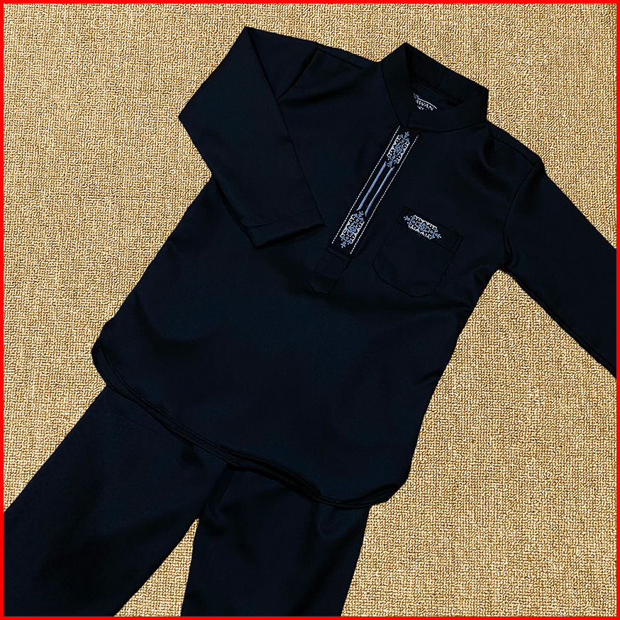 Kawan Muslim-koko Muslim Setelan Anak Laki Laki Lengan Panjang Bordir Premium Toyobo Usia 1-12 Tahun