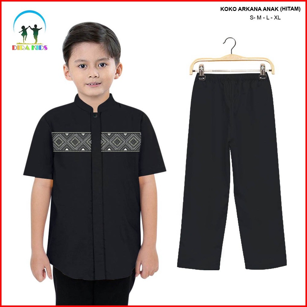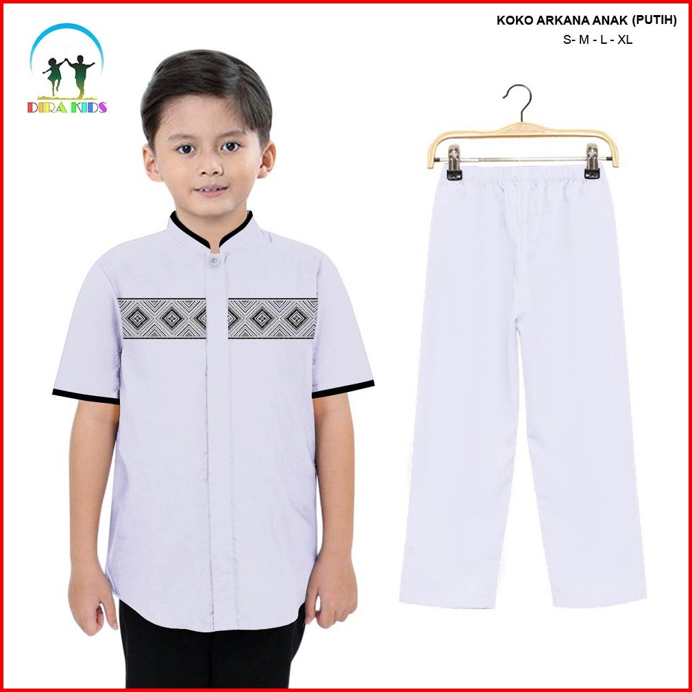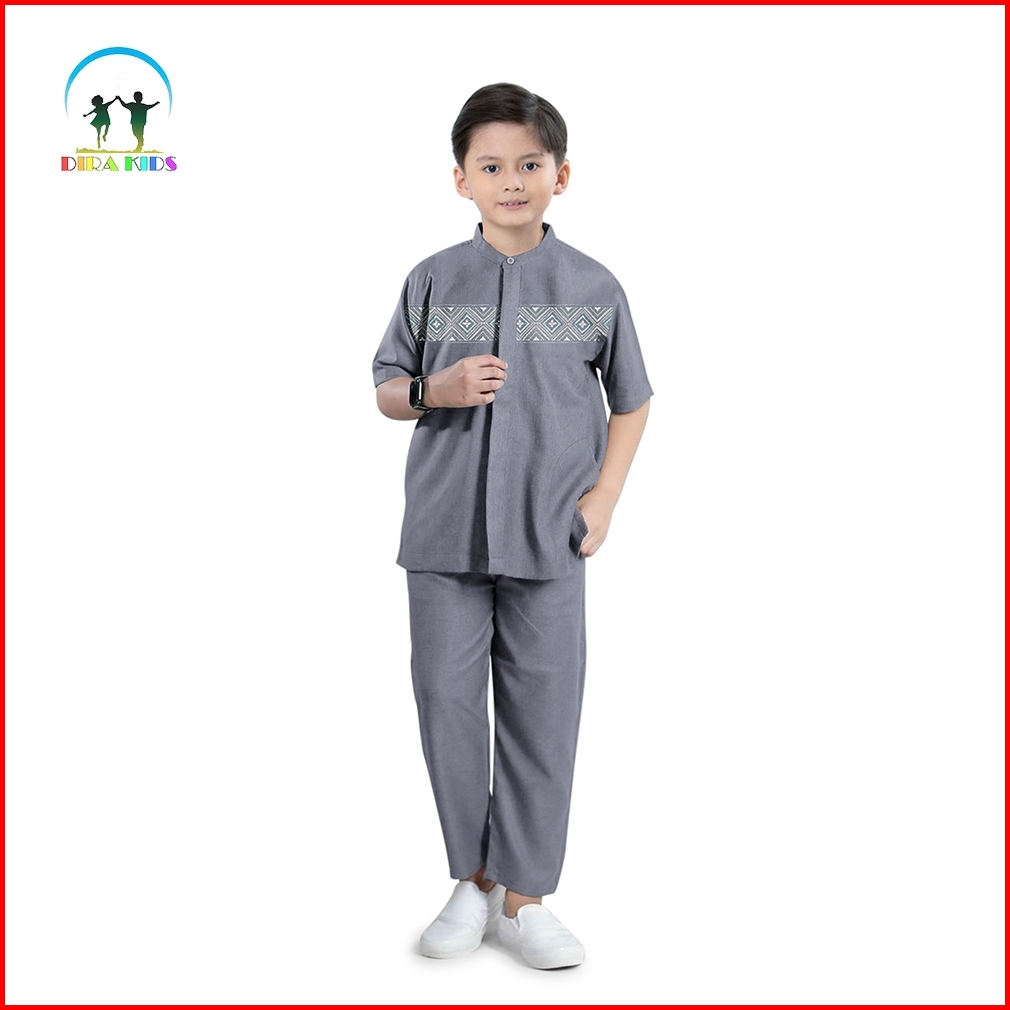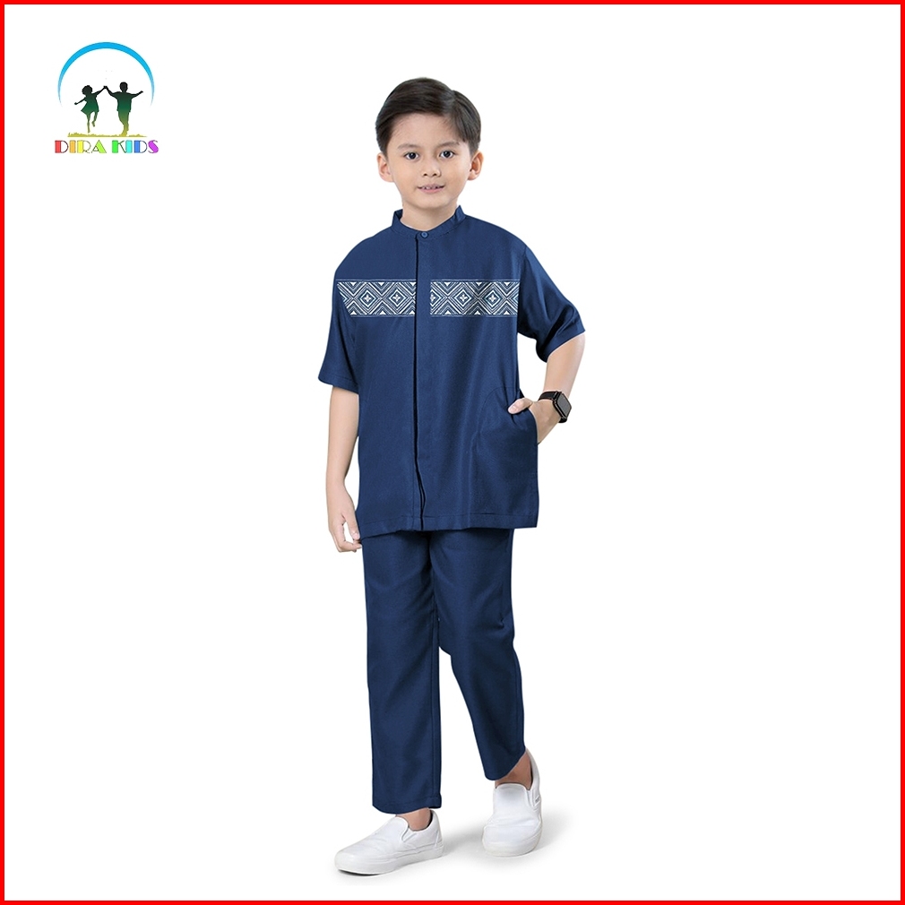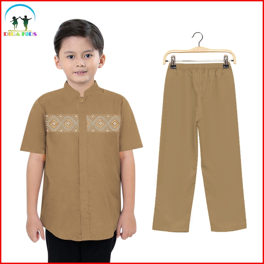 Dirakids Koko Set Setelan Baju Koko Kemeja Muslim Anak Laki-laki Kombinasi Bordir Premium Lengan Pendek Termurah Dan Ter
