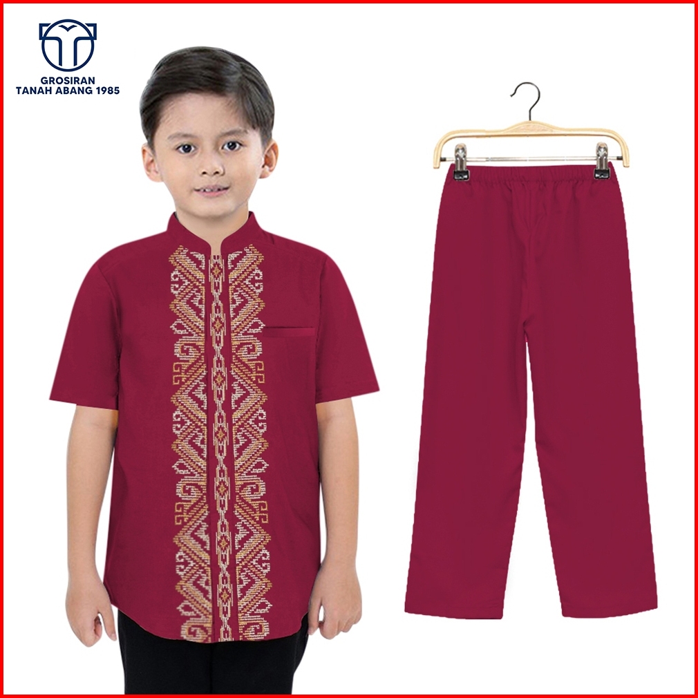 Grosir Baju Muslim Set Setelan Koko Anak Anak Laki-laki Kombinasi Bordir Batik 4-10 Tahun Terlaris Dan Termurah Lebaran