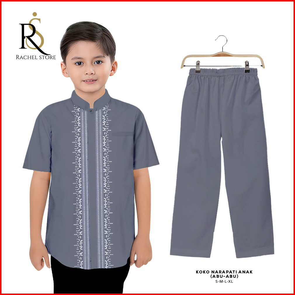 Rachel Fashion Baju Set Koko Setelan Anak Laki-laki Full Bordir Premium Lengan Pendek Usia 4 - 13 Tahun Termurah Dan Ter