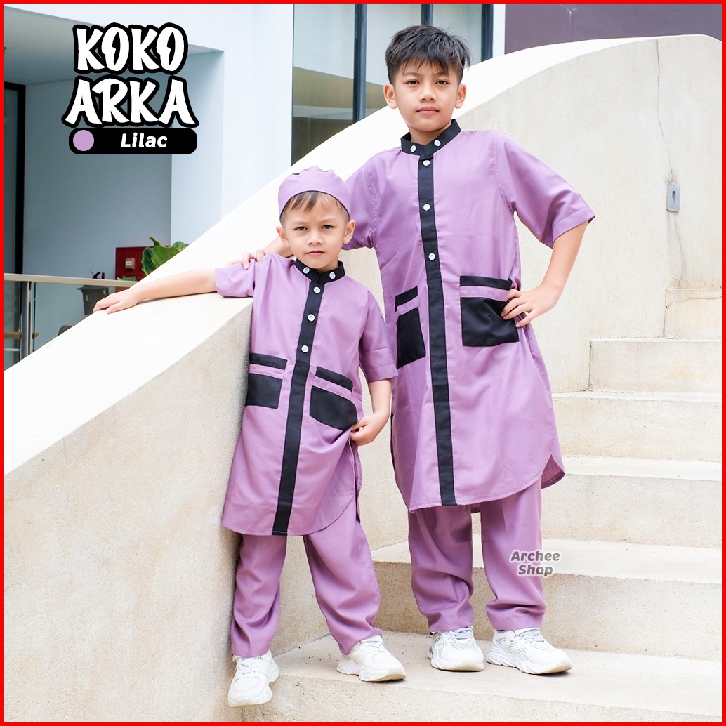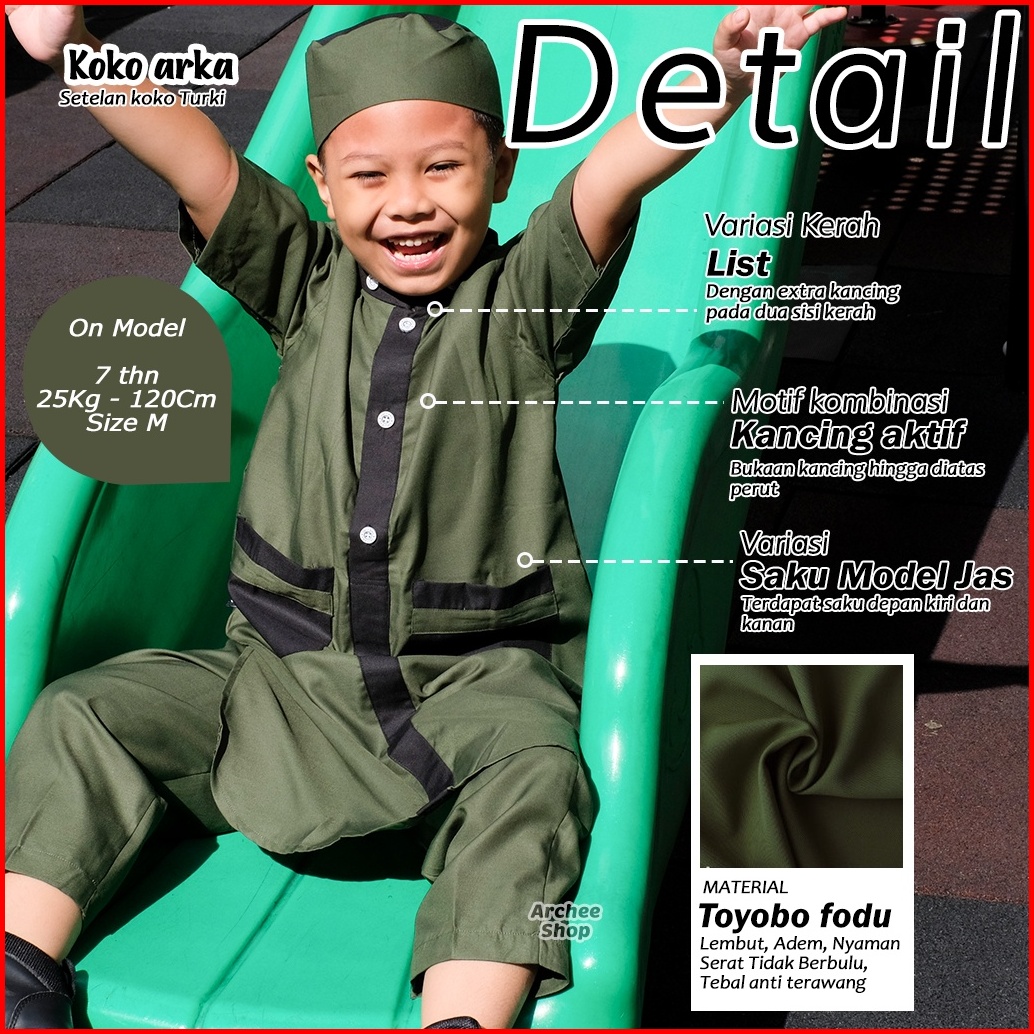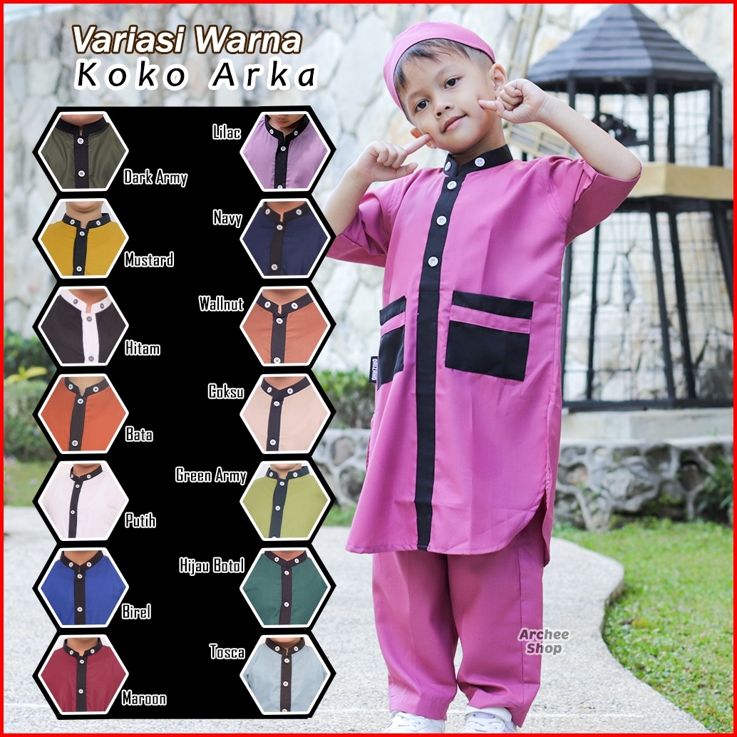 Setelan Baju Koko Kurta Muslim Anak Laki Laki Cowok Lengan Pendek Arka Bahan Katun Toyobo Fodu Halus