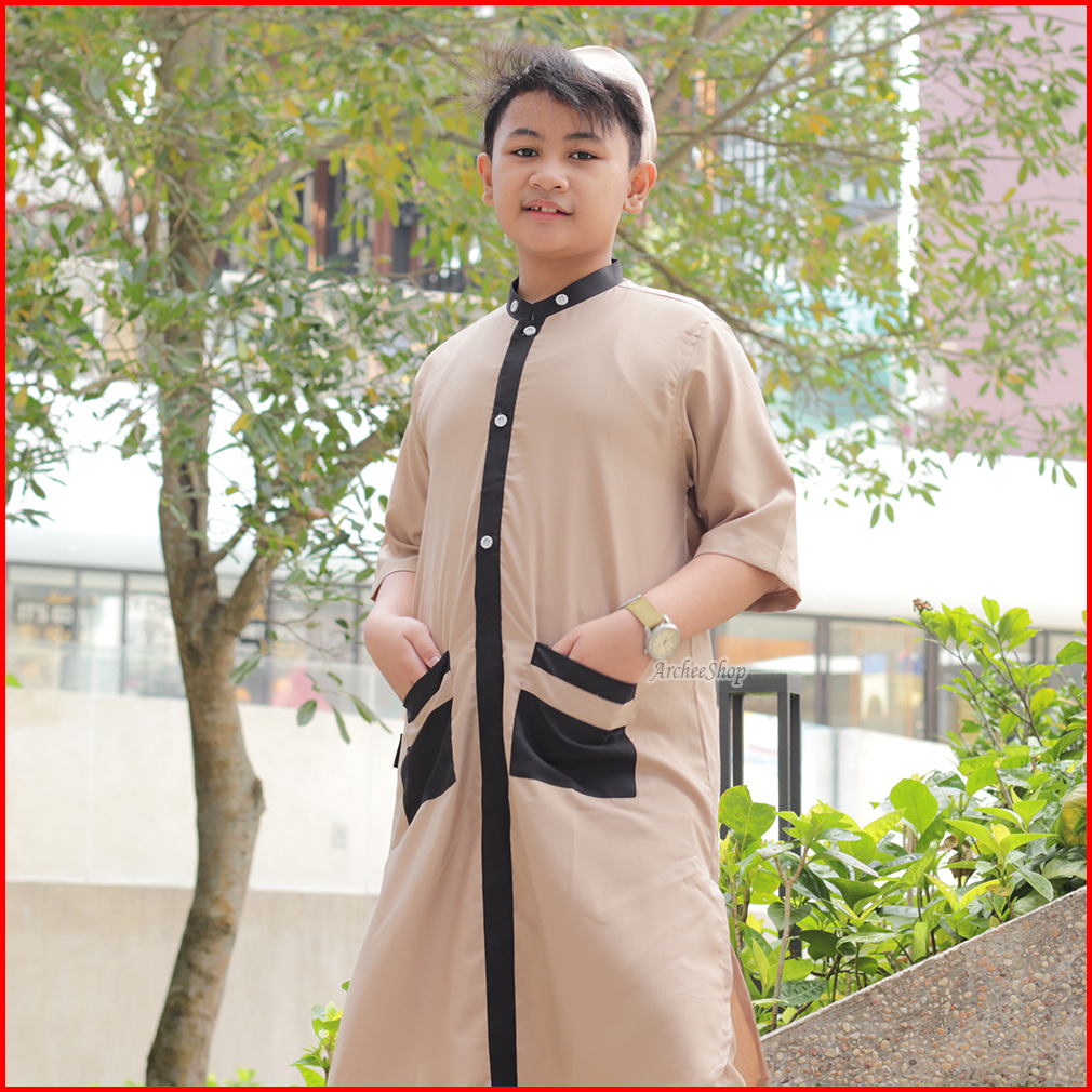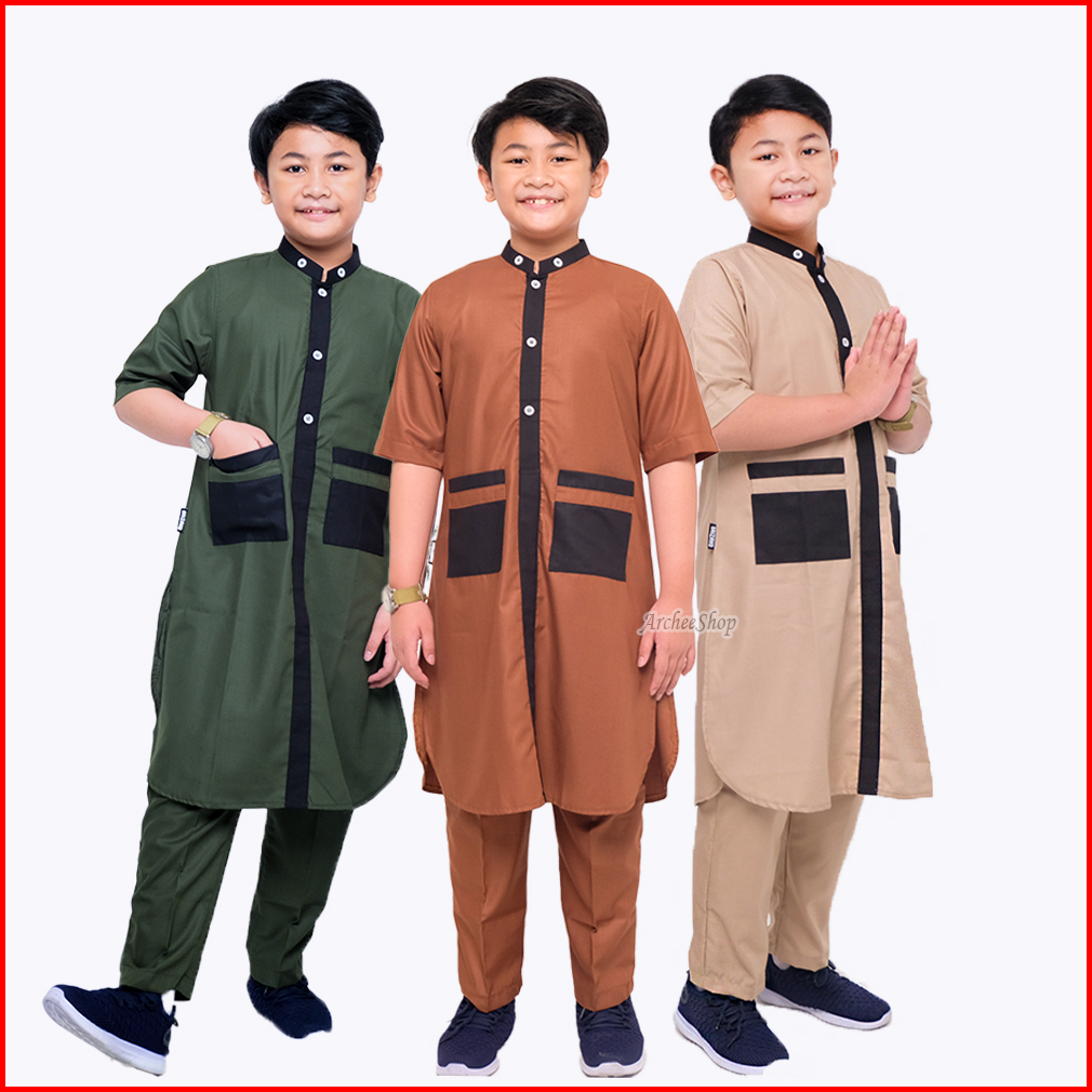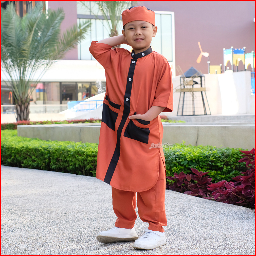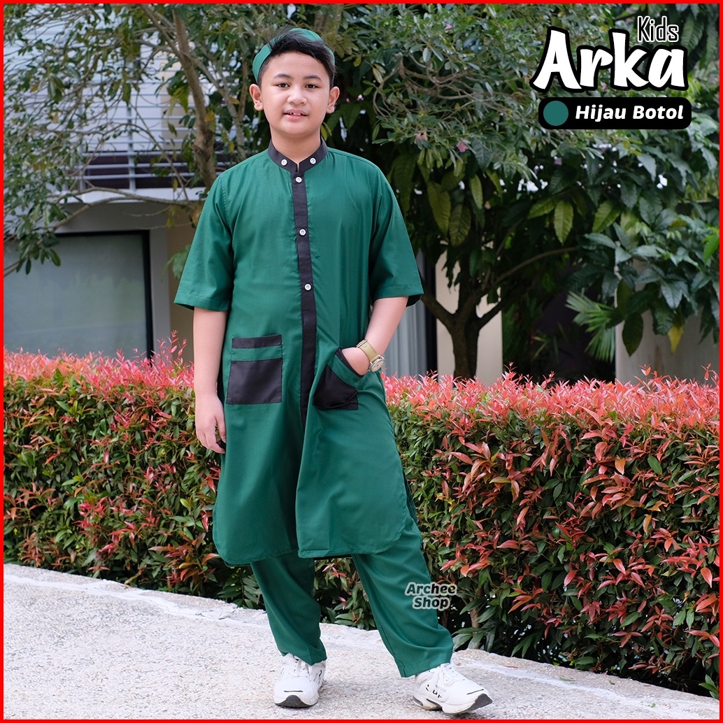 Setelan Baju Koko Kurta Muslim Anak Laki Laki Cowok Lengan Pendek Arka Bahan Katun Toyobo Fodu Halus