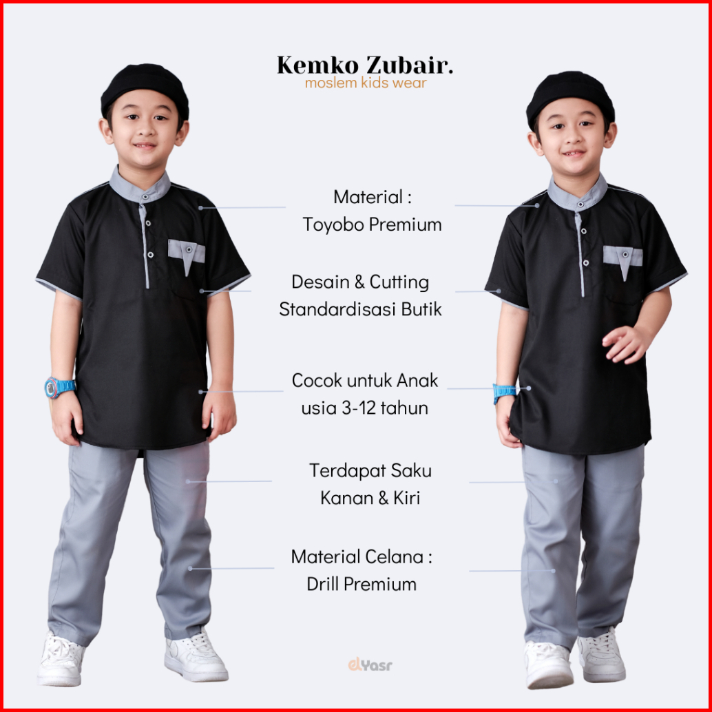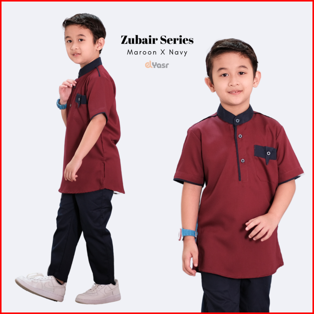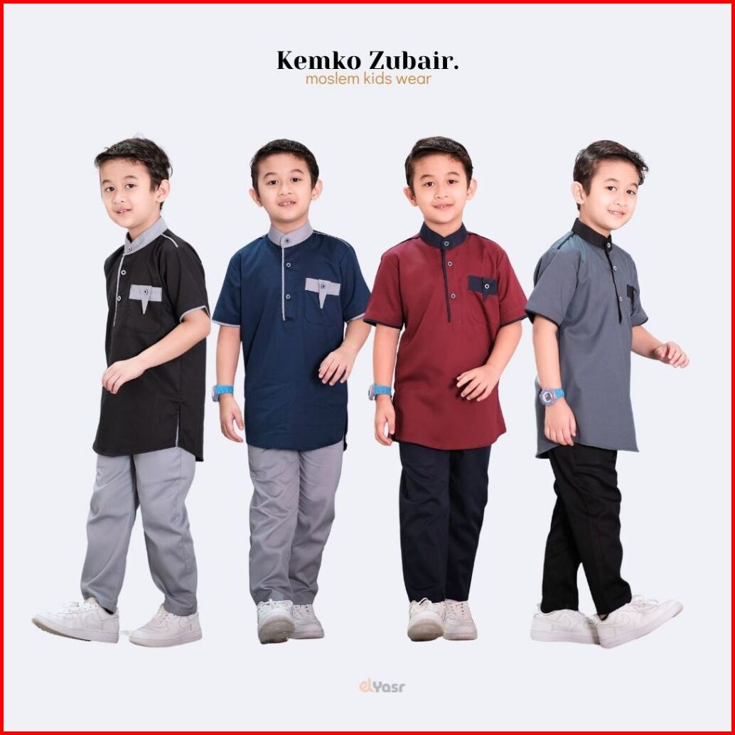 Elyasr - Free Peci Setelan Baju Kemeja Koko Premium Anak Laki Laki Umur 3-14 Tahun Zubair Series