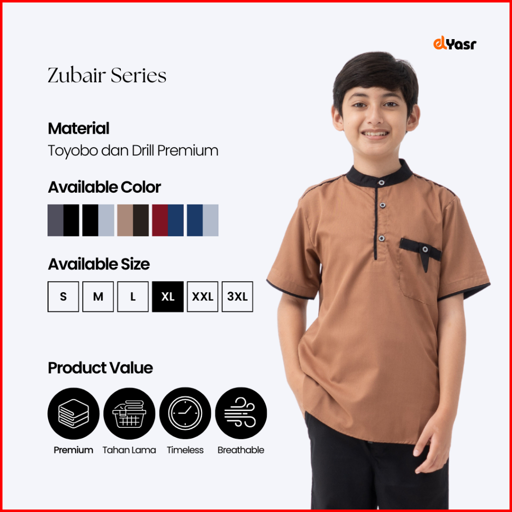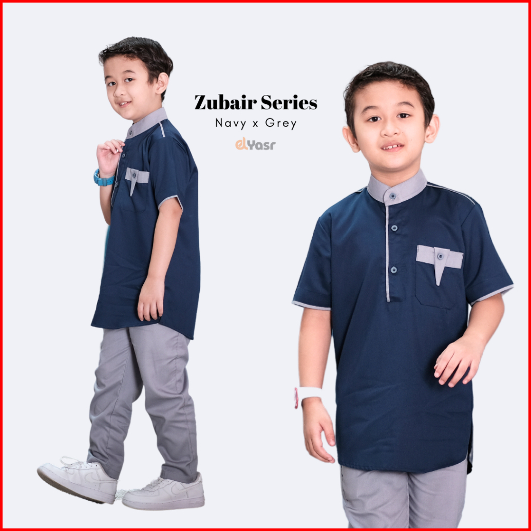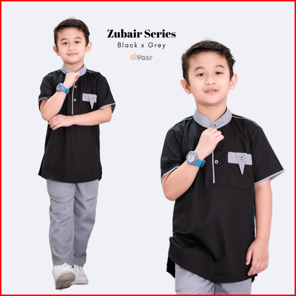 Elyasr - Free Peci Setelan Baju Kemeja Koko Premium Anak Laki Laki Umur 3-14 Tahun Zubair Series