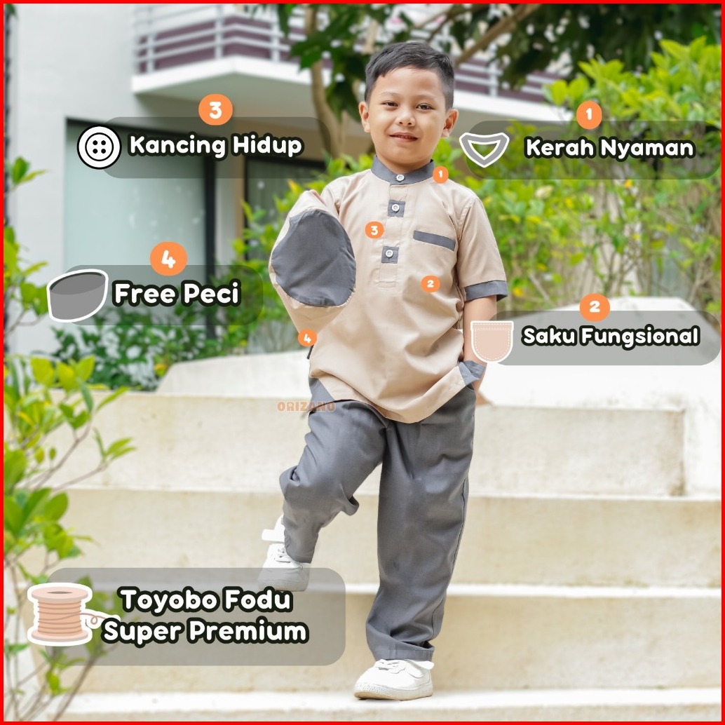 Setelan Anak Laki Laki Polos Baju Koko Muslim Super Premium Casual Attar