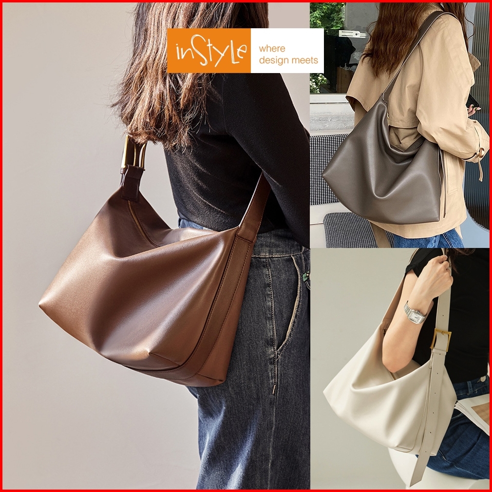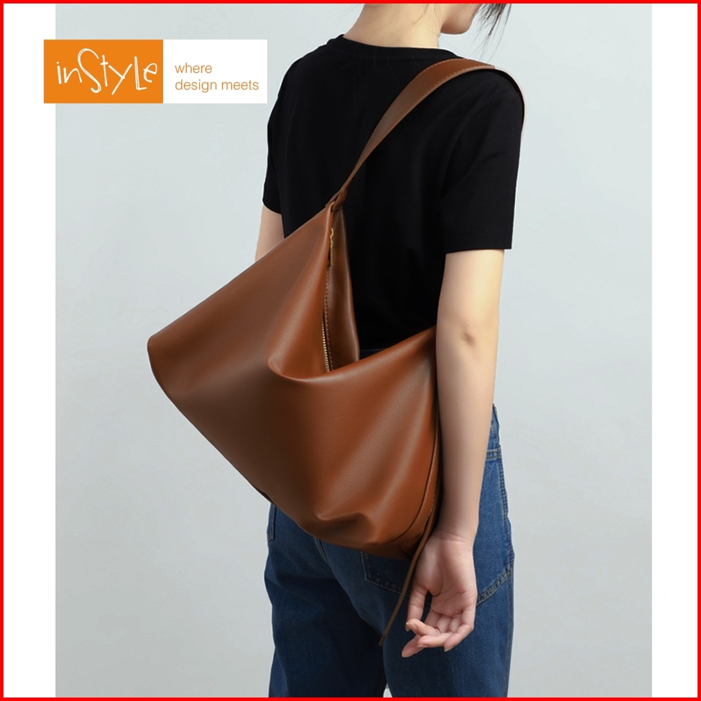 Tas Bahu Selempang Wanita Korean Vintage Style Shoulder Bag Besar Kulit Pu Leather Lembut T2-004