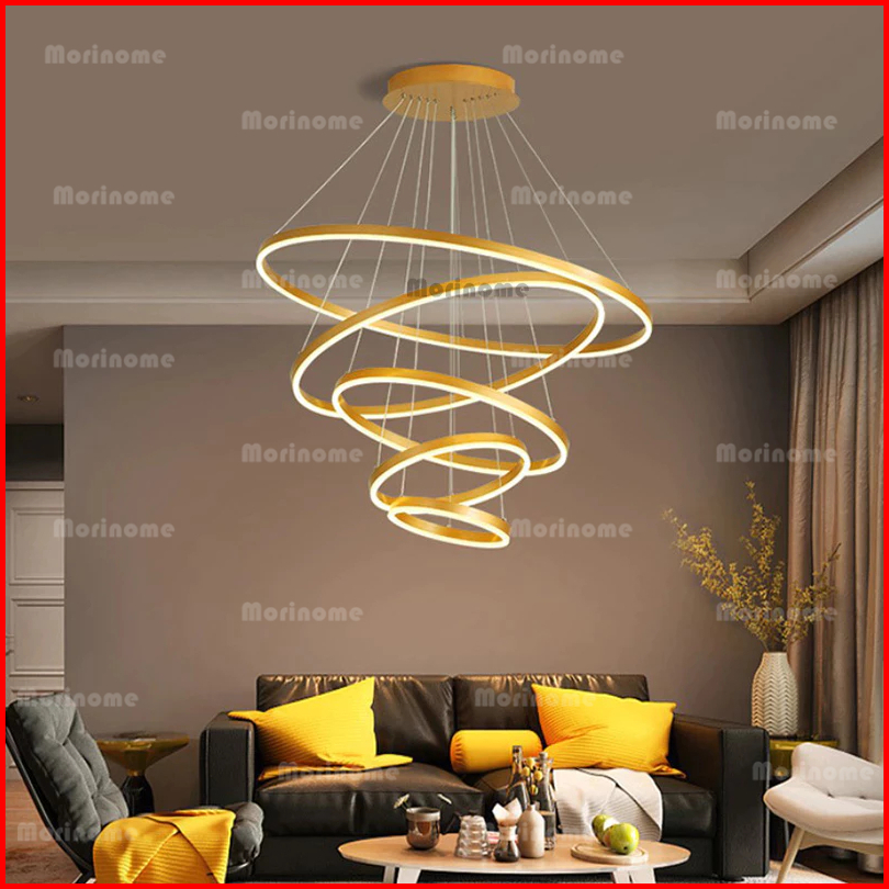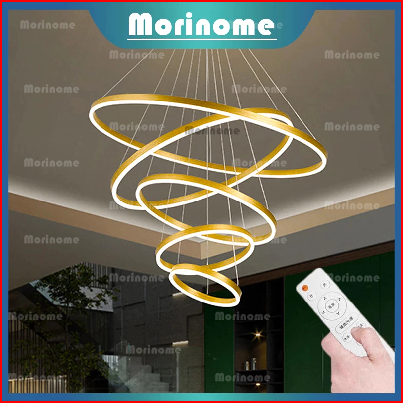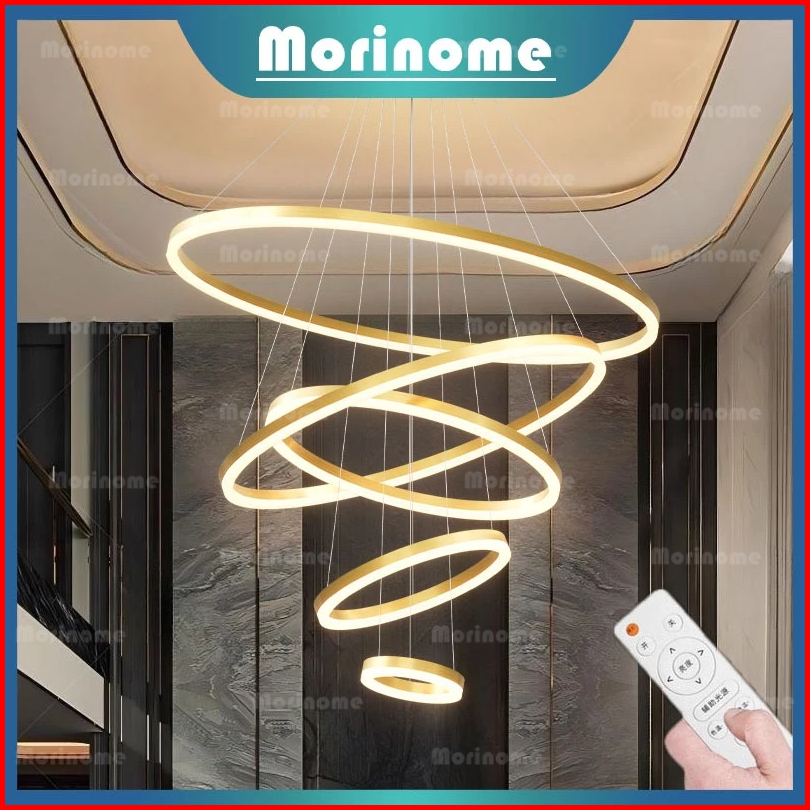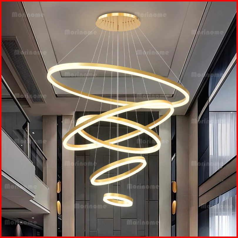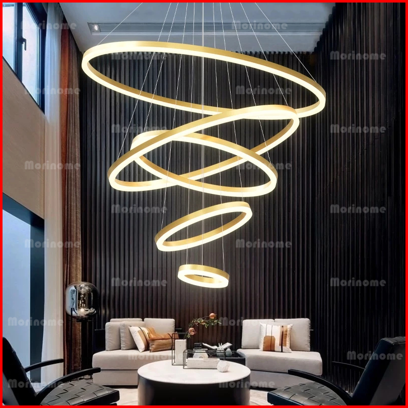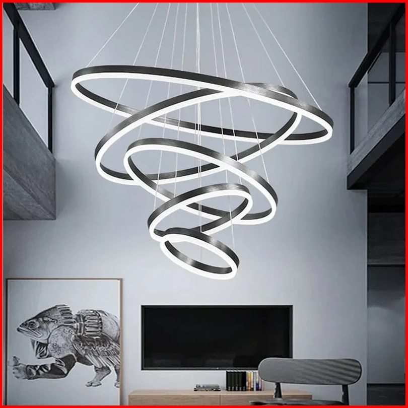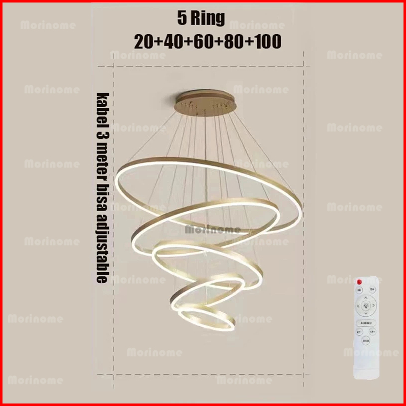 Lampu Gantung Ruang Tamu Lampu Hias Gantung Tangga Void 5 Ring 300w Led 3 Warna 120cm 100cm Minimalis Modern Kemewahan C