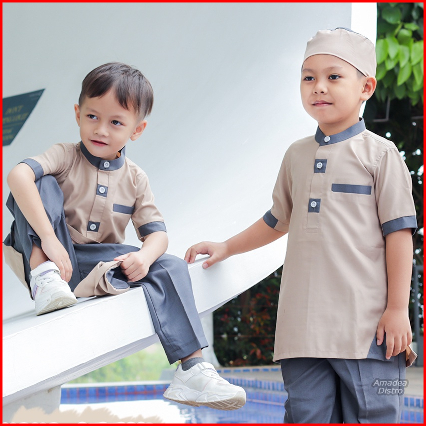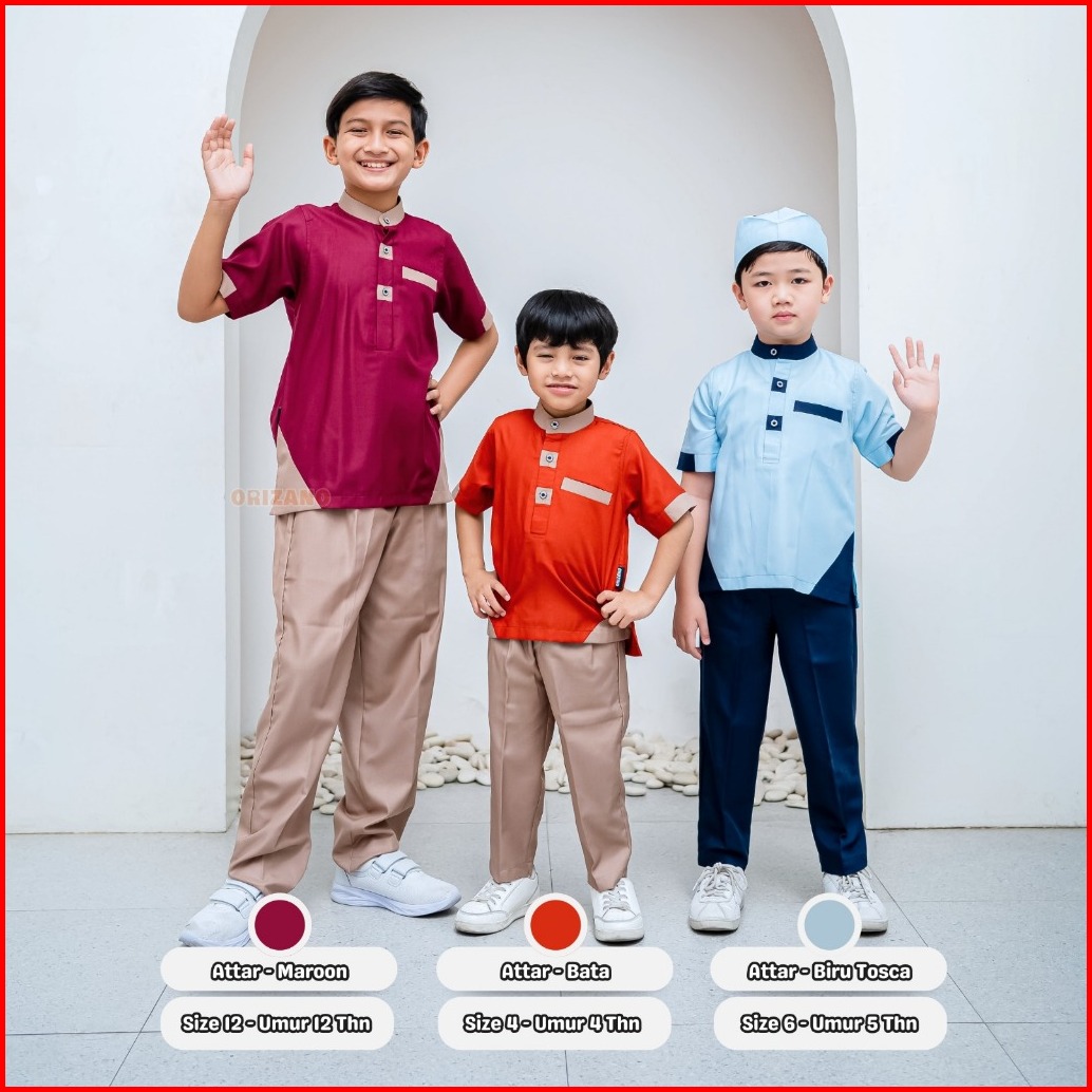 Baju Koko Anak Attar Setelan Koko Anak Muslim Laki Laki Polos Katun Toyobo Fodu