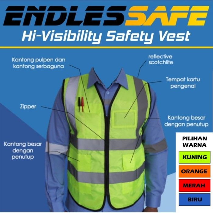 Rompi Safety vest proyek kantong + seleting (zipper) + reflektif hi-vi - Kuning
