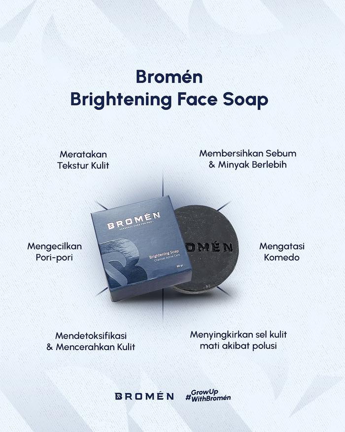 Sabun Cuci Muka Pemutih Pria BROMEN Brightening Soap - Perawatan Mencerahkan Wajah Kusam Cowok Komedo Membersihkan