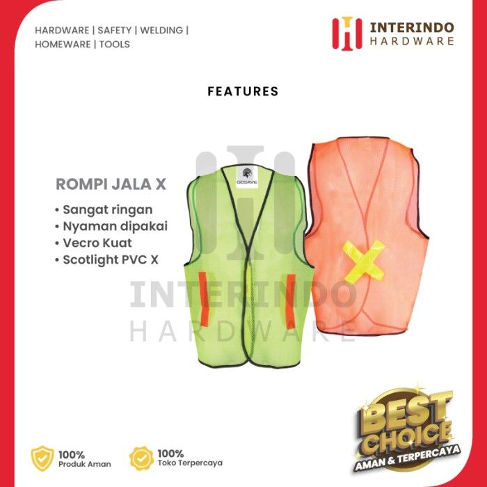 Rompi Jaring Scoth X Rompi Proyek Pengaman Jala Safety Vest Nyala - Hijau