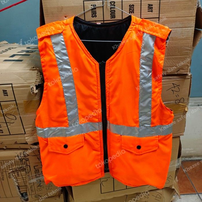 Rompi safety busa hijau / rompi proyek busa - Merah