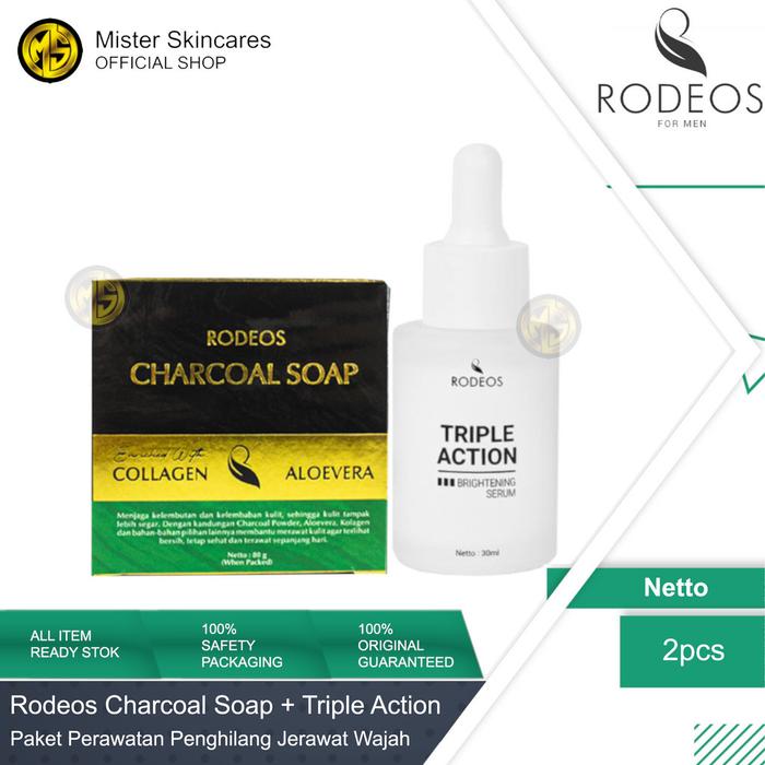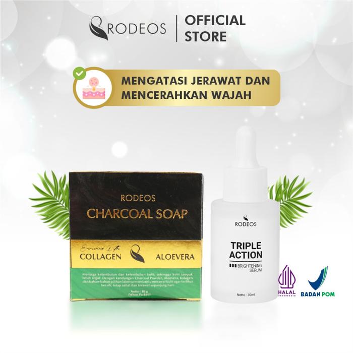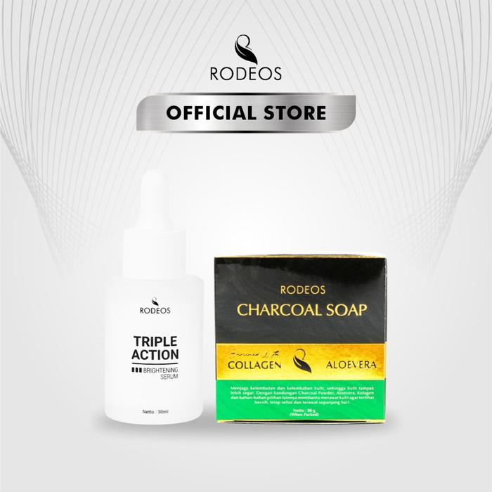 RODEOS Paket Charcoal Soap + Rodeos Triple Action Brightening Serum | Sabun Jerawat dan Serum Glowing Pemutih Wajah