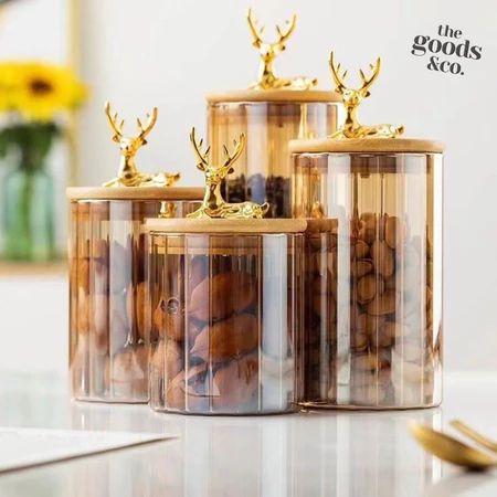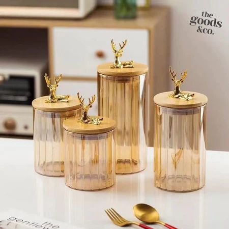 Toples Kaca Transparan Penyimpanan Makanan Glass Storage Jar Tutup Kayu