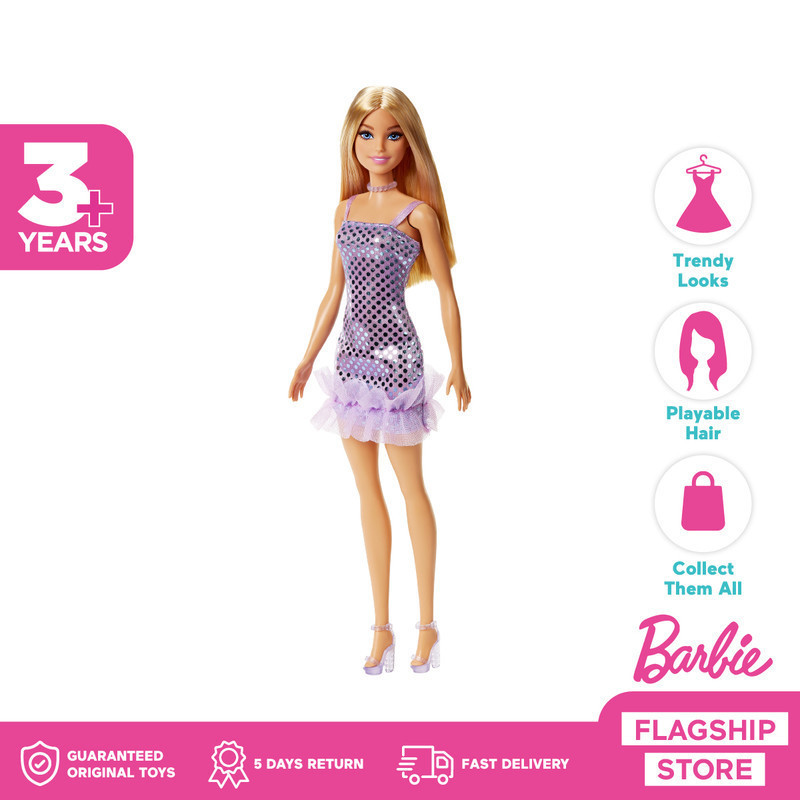 [FLASHSALE] BARBIE BLONDE IN LAVENDER METALLIC MINI DRESS - MAINAN BONEKA ANAK PEREMPUAN