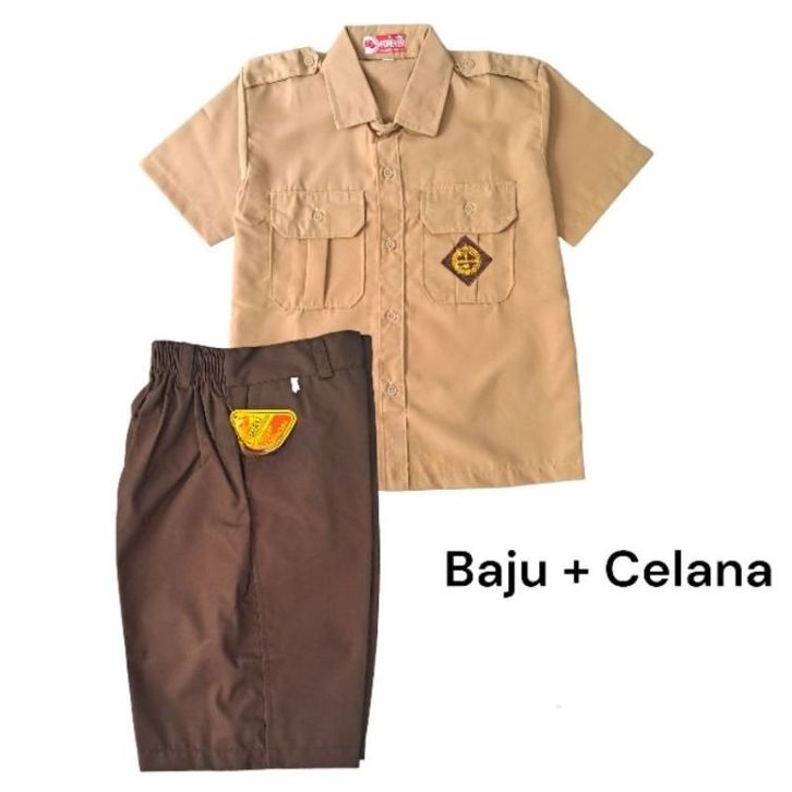 Setelan Seragam Pramuka SD Baju Pendek Celana Pendek