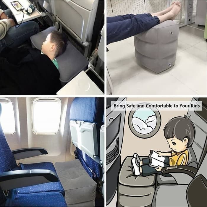 Bantal Sandaran Kaki Tiup Mobil Travel Pesawat Rumah Kantor 3 Layer - Abu-abu