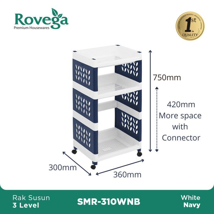 Rovega Supra Rak Susun 3 Tingkat dengan Roda Premium 3 Tier Rack SMR-310