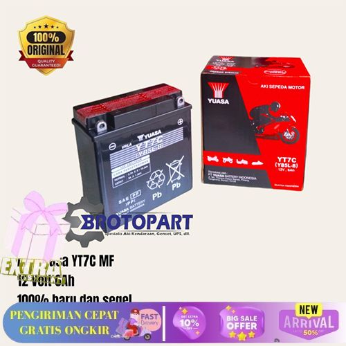 AKI ACCU MOTOR YUASA YT7C MF KERING 6AH 6 AMPERE