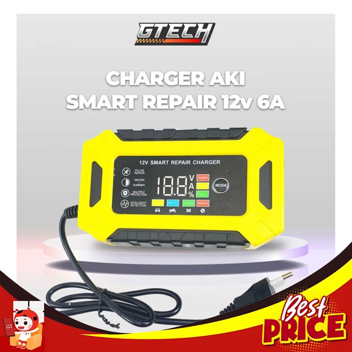 CHARGER AKI 6A 12V MOBIL MOTOR CAS AKI BISA REPAIR SMART CHIP