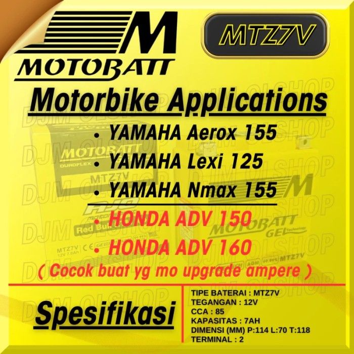AKI MOTOR NMAX 2019, AEROX 155, LEXI, LEXY MOTOBATT MTZ7V ORIGINAL