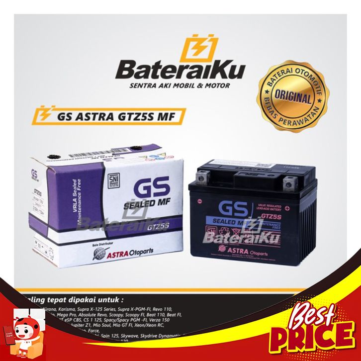 AKI MOTOR GS ASTRA GTZ5S MF UNTUK SCOOPY, BEAT, VARIO, MIO, DLL