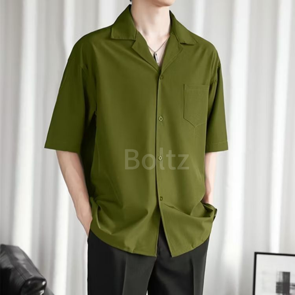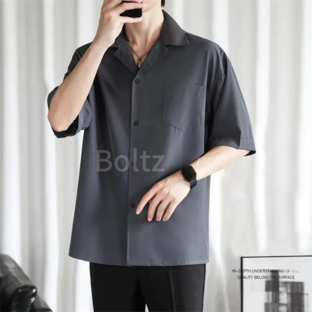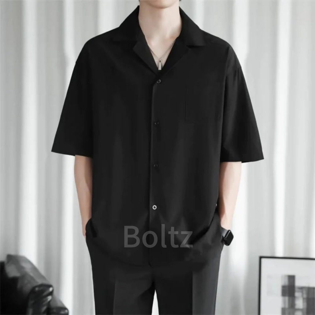 ⭐⭐⭐⭐⭐ Baju Kemeja Polos Pria Lengan Pendek Jumbo Slimfit Premium Distro Atasan Hem Cowok Laki Hitam Putih