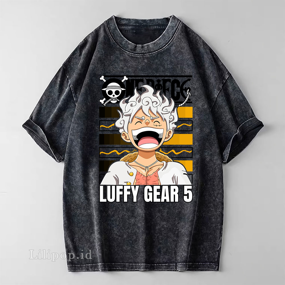Kaos Baju Wash Tshirt Pria Wanita One Piece Luffy Gear 5 Stone wash Baju Distro Basic Lengan Pendek unisex