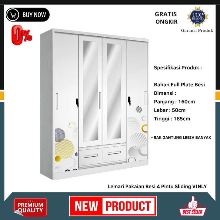 Lemari Pakaian Sliding Besi 4 Pintu VINLY GRATIS ONGKIR
