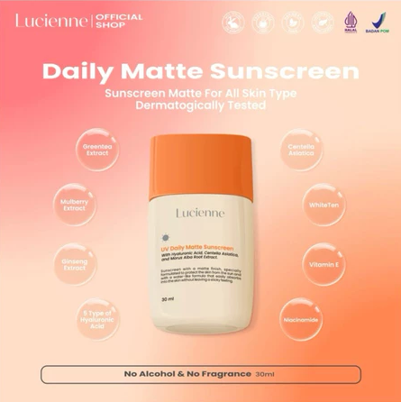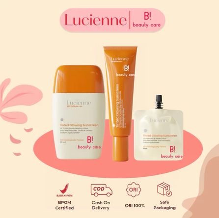 FREE ONGKIR Tinted Sunscreen Lucienne Tinted Glowing Sunscreen - Auto Glowing (Foundie Versi Ringan) 20ML