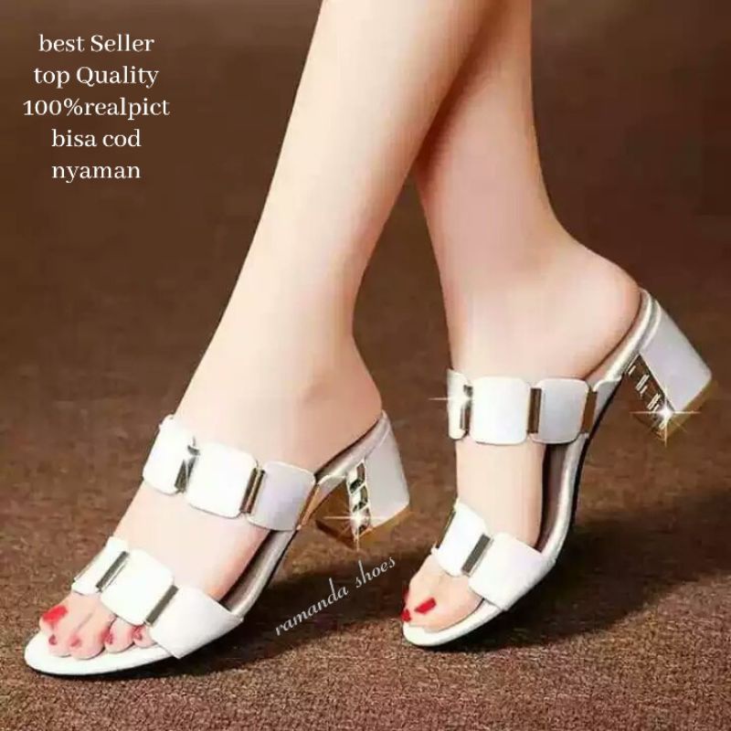 FREE ONGKIR Sendal Terbaru Hak Tahu Wanita 5 cm Ban 2 PUTIH kekinian RM01
