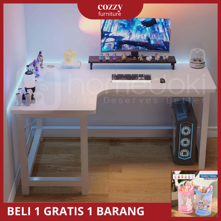 Meja Kerja L / Meja Komputer / Meja Kantor / Meja Belajar Aesthetic / Meja Belajar