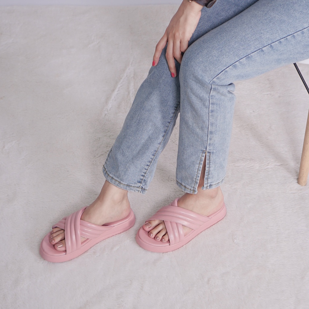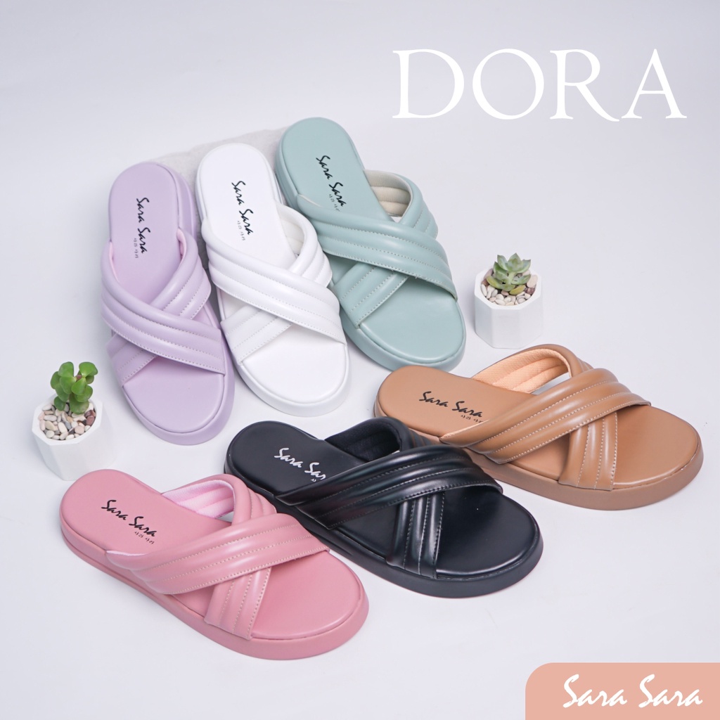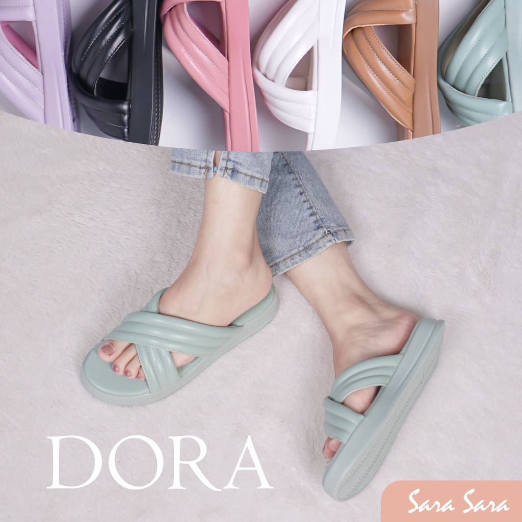 FREE ONGKIR Sara Sara DORA Sandal Tali Wanita Casual dua strap silang sendal tebal slop cewek anti slip kekinian