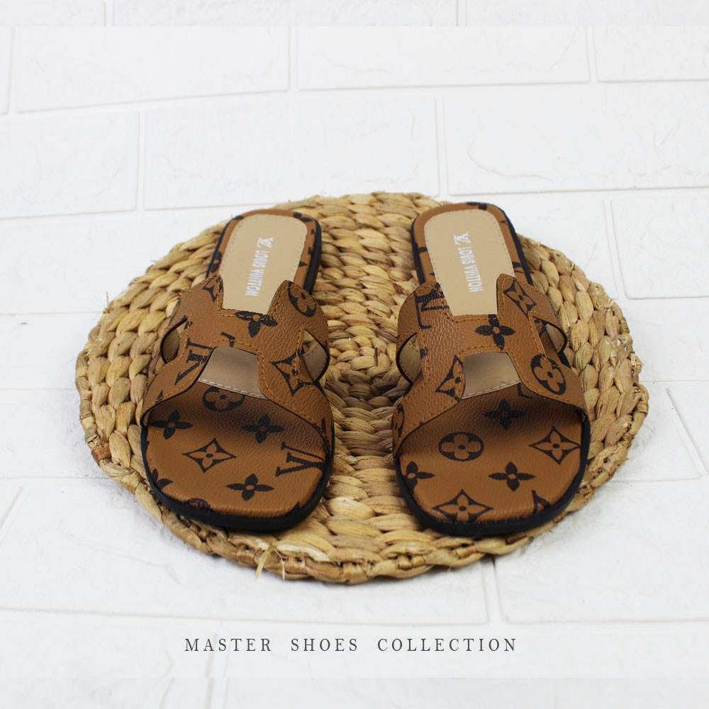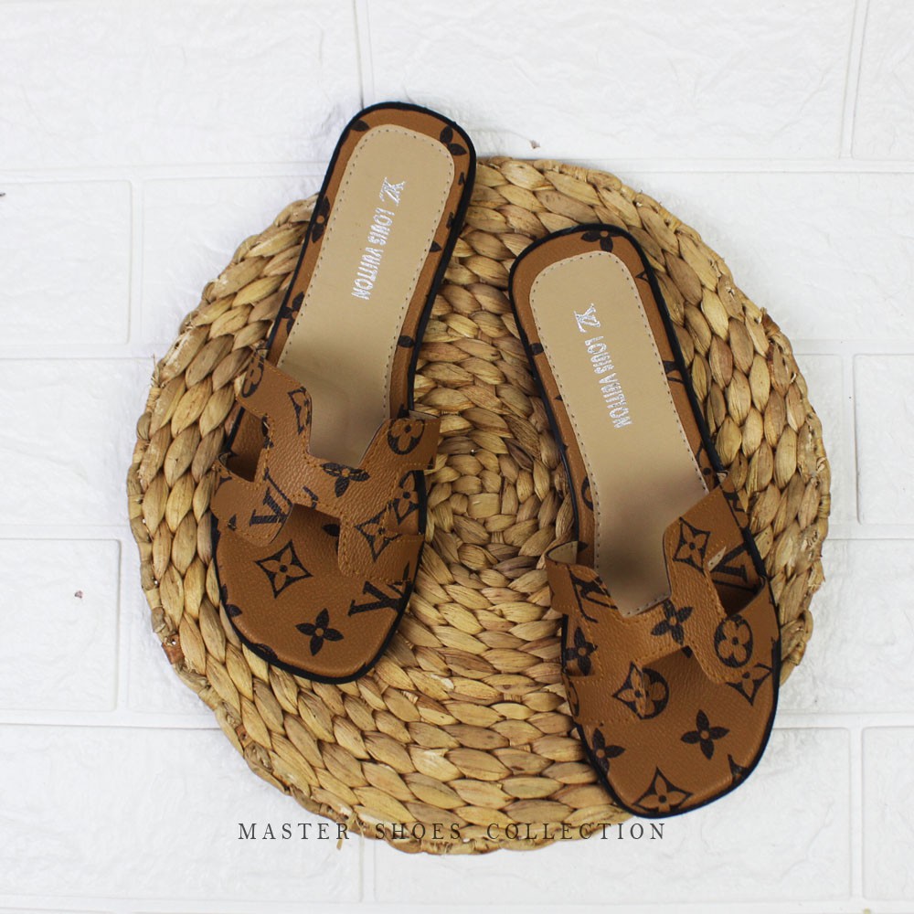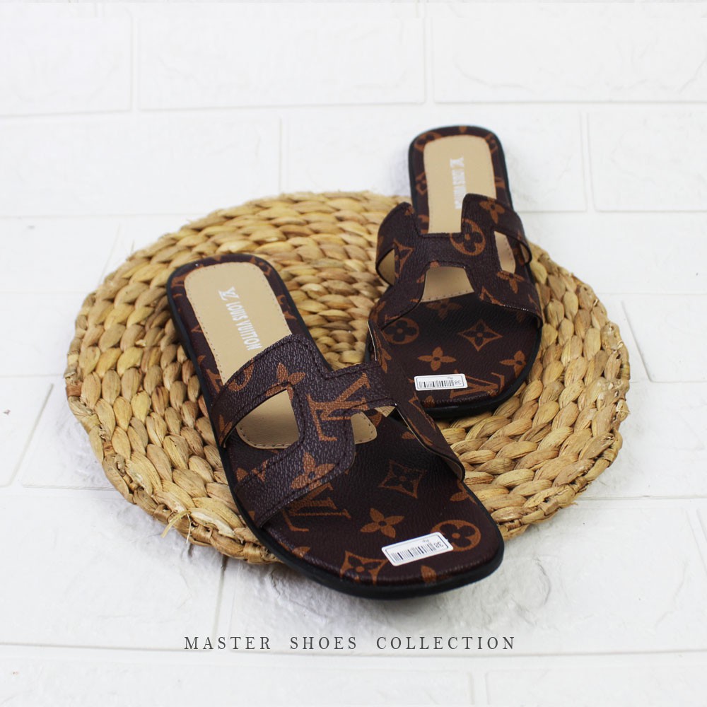 FREE ONGKIR Terbaru -Sandal Wanita LV H slop Slip On Remaja Kekinian / Sendal Teplek Selop Flip Flop Perempuan
