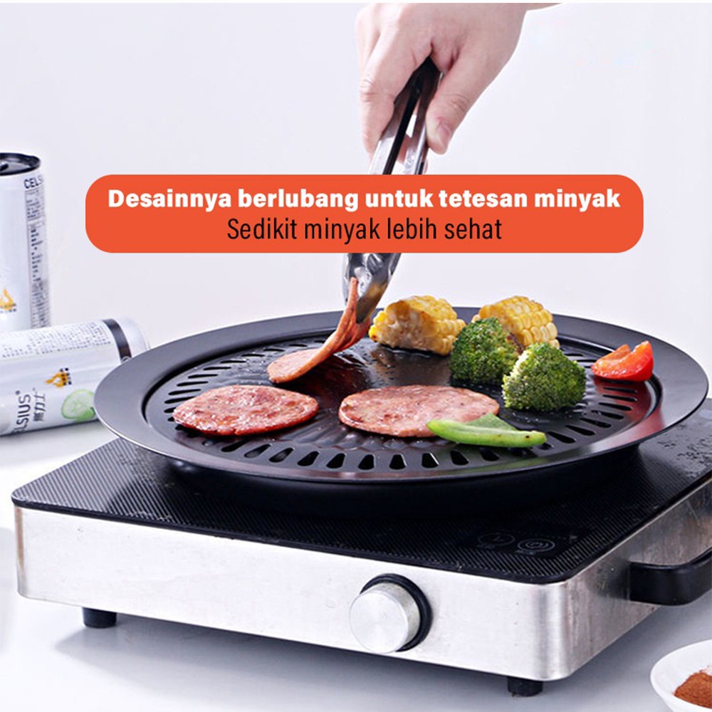 FREE ONGKIR YK DESIGN YK-818A Alat Pemanggang / Piring Pemanggang BBQ Grill Pan Desain Bulat Bahan Teflon Tebal