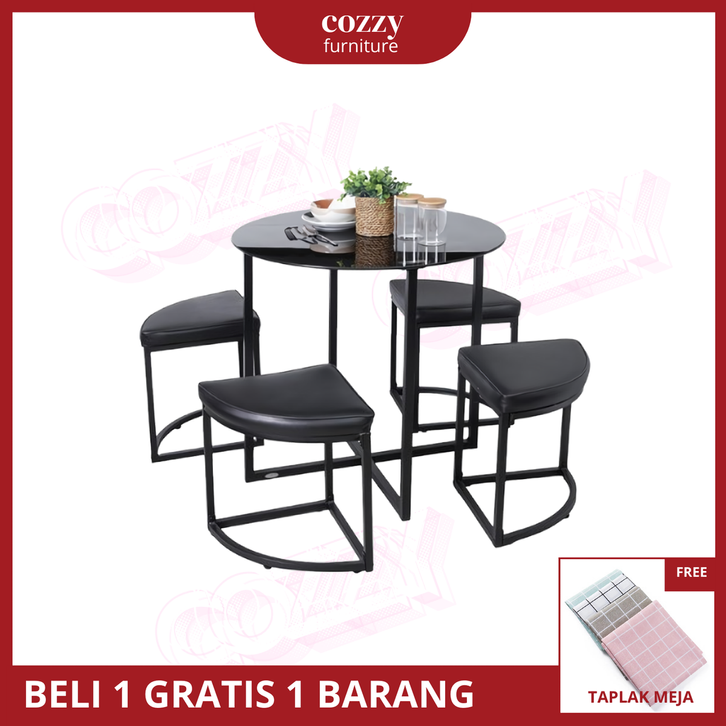Set 5 Pcs Zeus Meja Makan Dengan Bangku - Hitam Dining Table Dinner Table Meja Kursi Ruang Makan Aesthetic Furniture