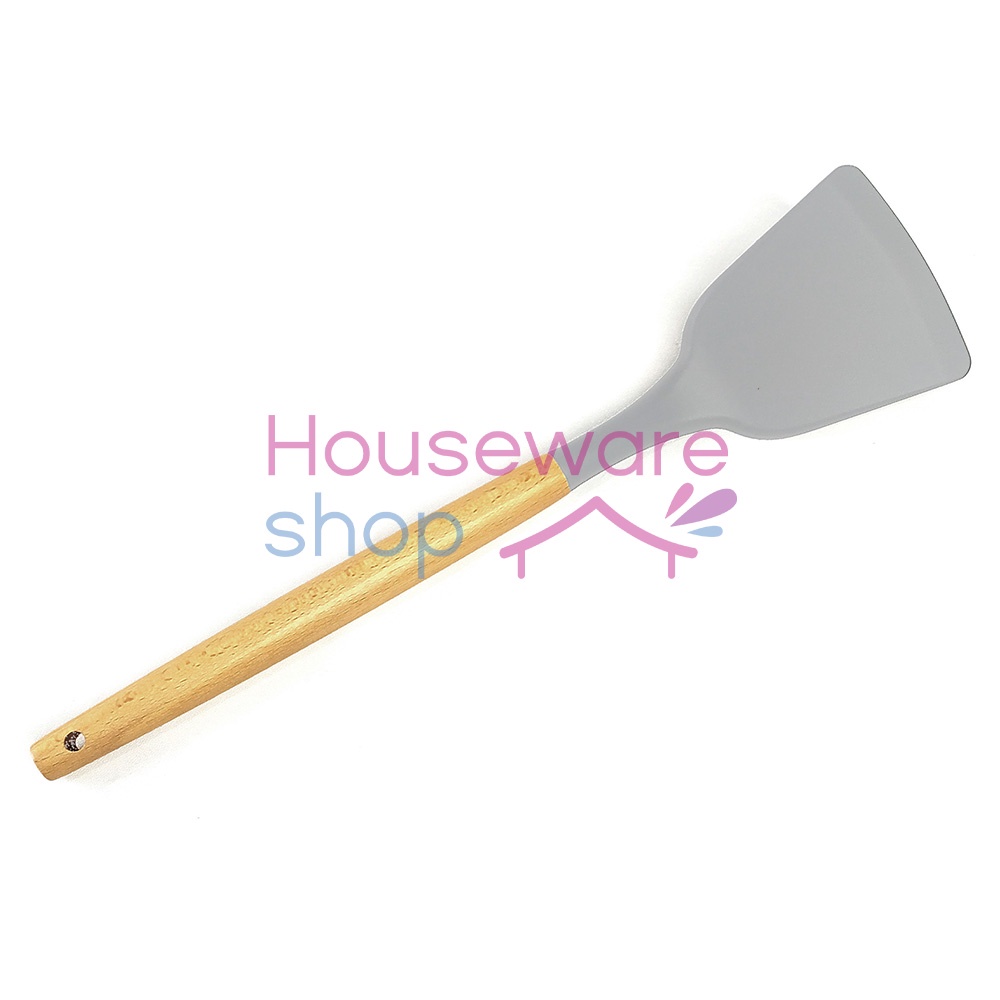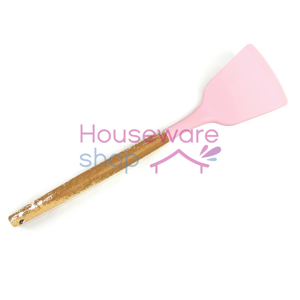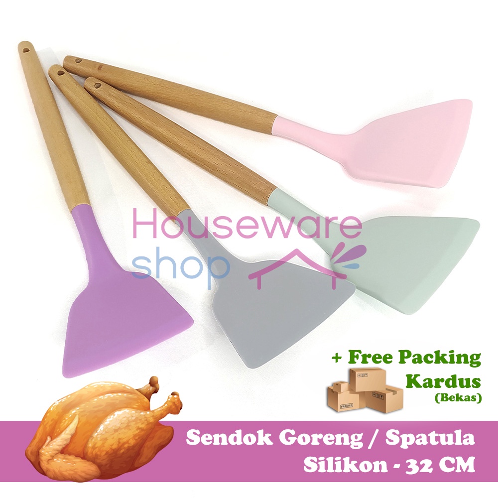 FREE ONGKIR Spatula Gagang Kayu / Sendok Goreng Silikon Tahan Panas - 32 CM