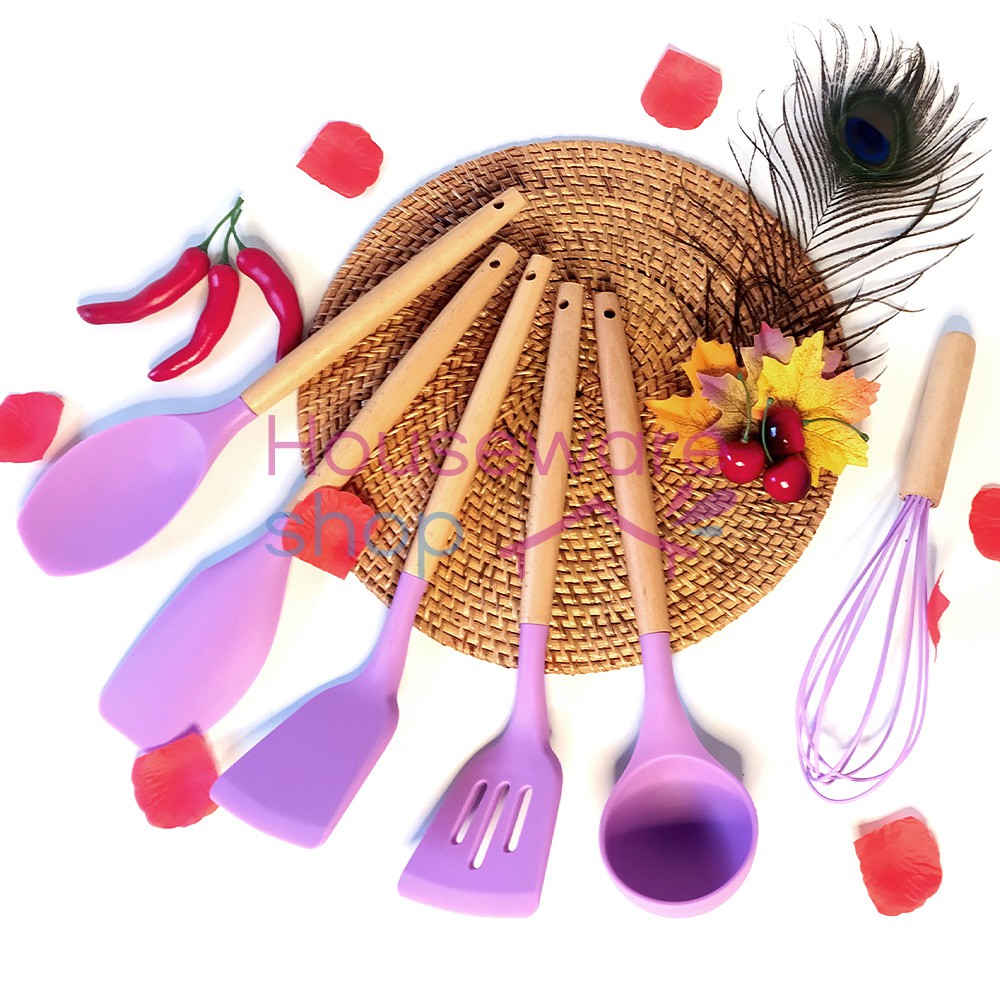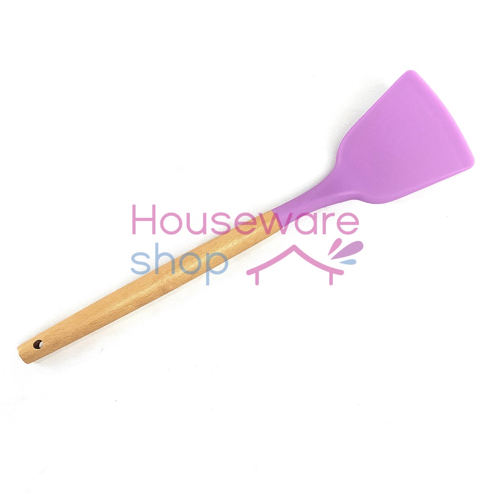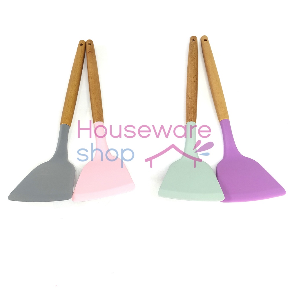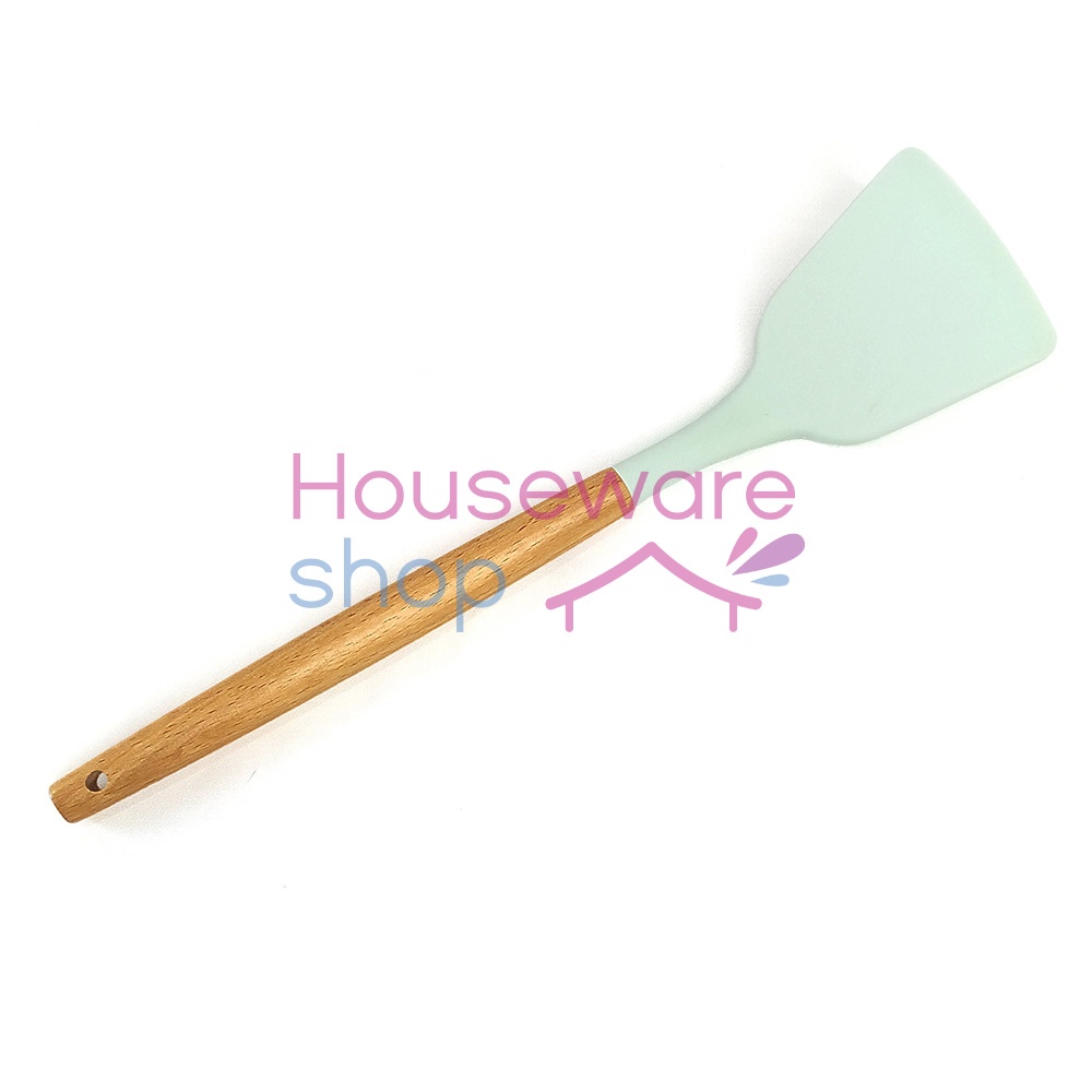 FREE ONGKIR Spatula Gagang Kayu / Sendok Goreng Silikon Tahan Panas - 32 CM