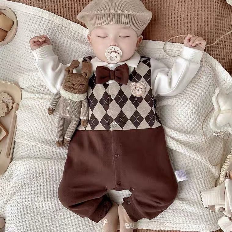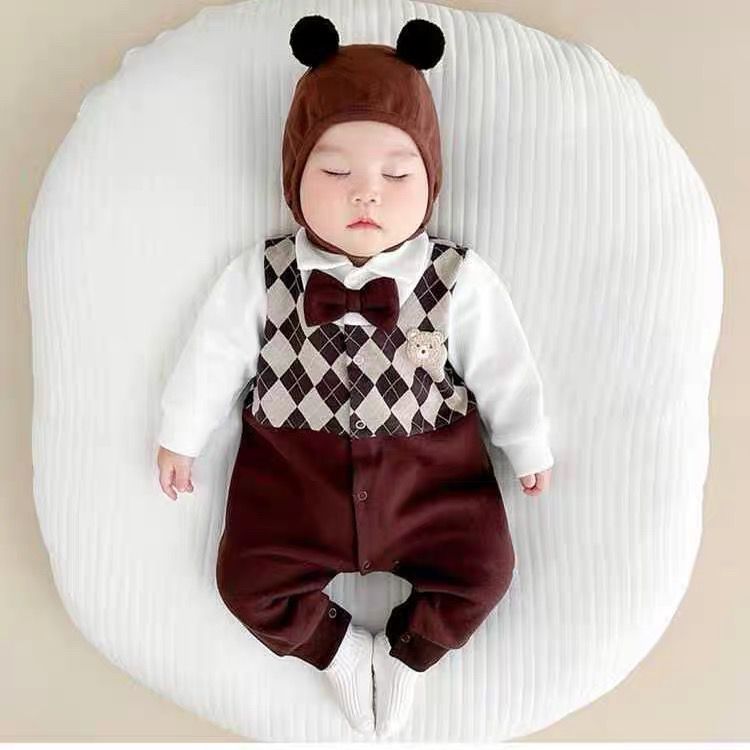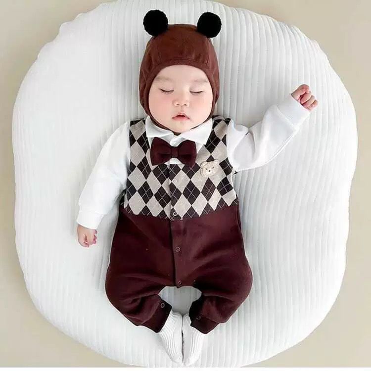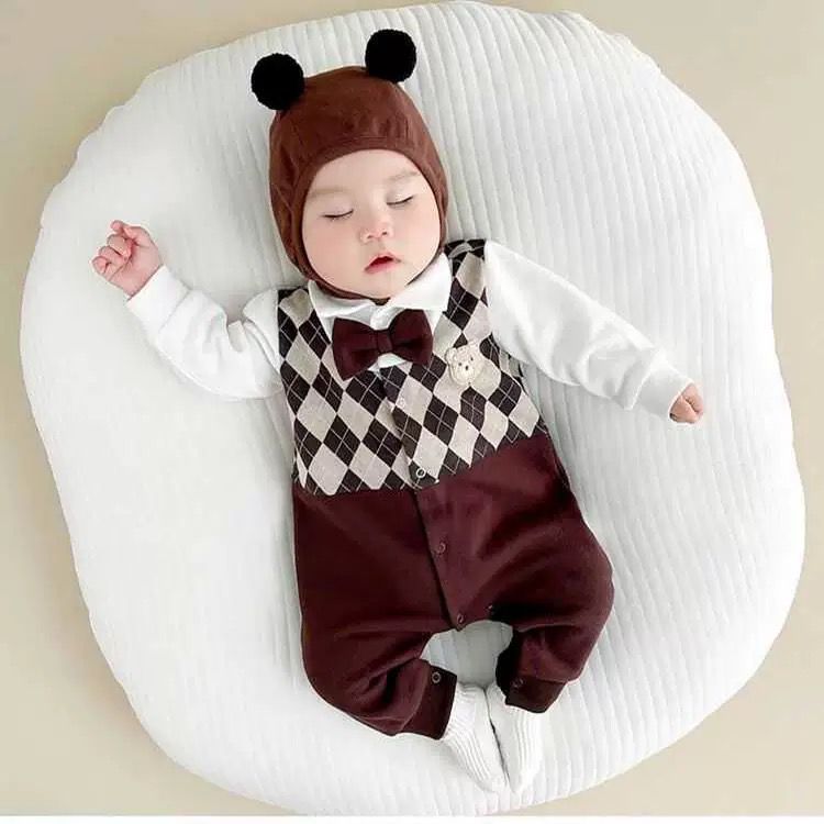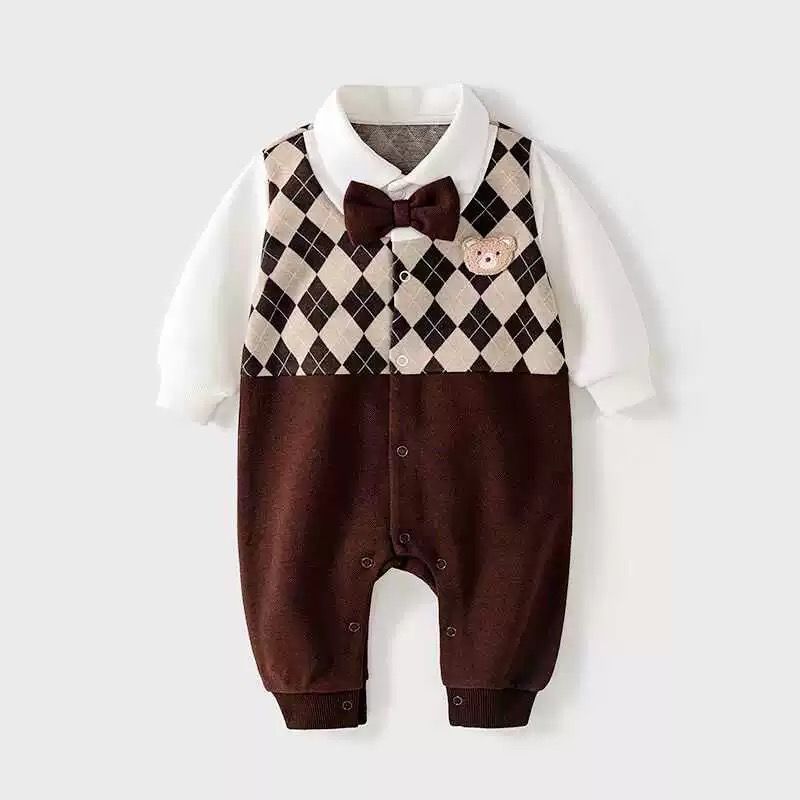 Jumper panjang premium bayi laki laki model baju school kotak bear brown 0-18 bulan