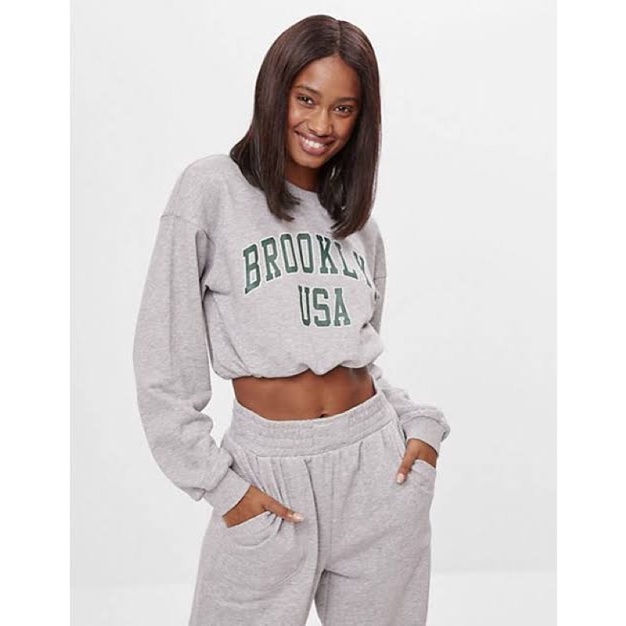 FREE ONGKIR Bershk* Cropped Drawstring Sweatshirt